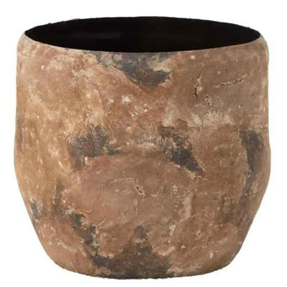 Dimensions : D. 39 x H. 37 cmMatière : MétalSpécificités :Pratique & UtileVase DesignForme RondeTexture RugueusePoids : 2,645 kgCouleur : Marron