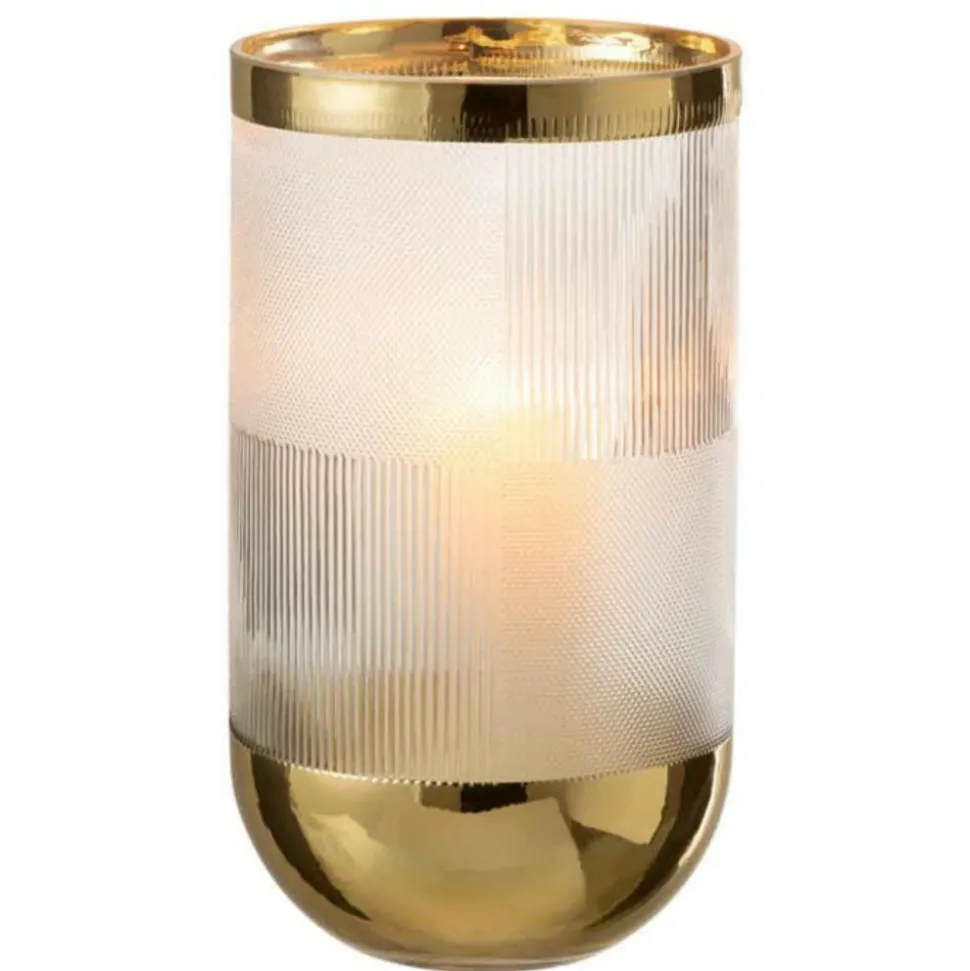 Dimensions : L. 15 x l. 27 x H. 27 cmMatière : VerreSpécificités :Tendance & ChicVase DesignForme CylindriquePoids : 0,95 kgCouleur : Transparent & Or