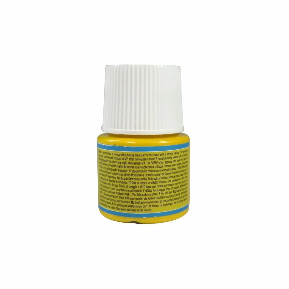 Peinture effet daim pour tissus. Elle s’utilise sur tout type de textiles, peu importe la couleur et l’épaisseur du tissu.D’une couleur intense, concentrée et daim, elle est idéale pour réaliser de jolis dessins sur vos t-shirts, tote-bags, trousse et textiles de tout genre. Appliquez-là au pinceau, en sérigraphie ou même avec des pochoirs textiles. Vous pouvez mélanger la peinture avec de l’eau pour un rendu aquarellé.Mélangez là avec d’autres couleurs de la même gamme pour enrichir votre nuancier de couleurs. Cette peinture résiste particulièrement bien à la lumière. Utilisez un fer à repasser sur l’envers du tissu décoré pour fixer les couleurs Setacolor (5 minutes en position coton sans vapeur). Vous pouvez aussi utiliser un four ménager (5 minutes à 150°)
