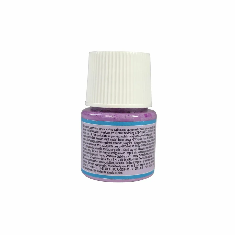 Peinture pour tissus. Elle s’utilise sur tout type de textiles, peu importe la couleur et l’épaisseur du tissu.D’une couleur intense, concentrée et couvrante, elle est idéale pour réaliser de jolis dessins sur vos t-shirts, tote-bags, trousse et textiles de tout genre. Appliquez-là au pinceau, en sérigraphie ou même avec des pochoirs textiles. Vous pouvez mélanger la peinture avec de l’eau pour un rendu aquarellé.Mélangez là avec d’autres couleurs de la même gamme pour enrichir votre nuancier de couleurs. Cette peinture résiste particulièrement bien à la lumière. Utilisez un fer à repasser sur l’envers du tissu décoré pour fixer les couleurs Setacolor (5 minutes en position sans vapeur). Vous pouvez aussi utiliser un four ménager (5 minutes à 150°)