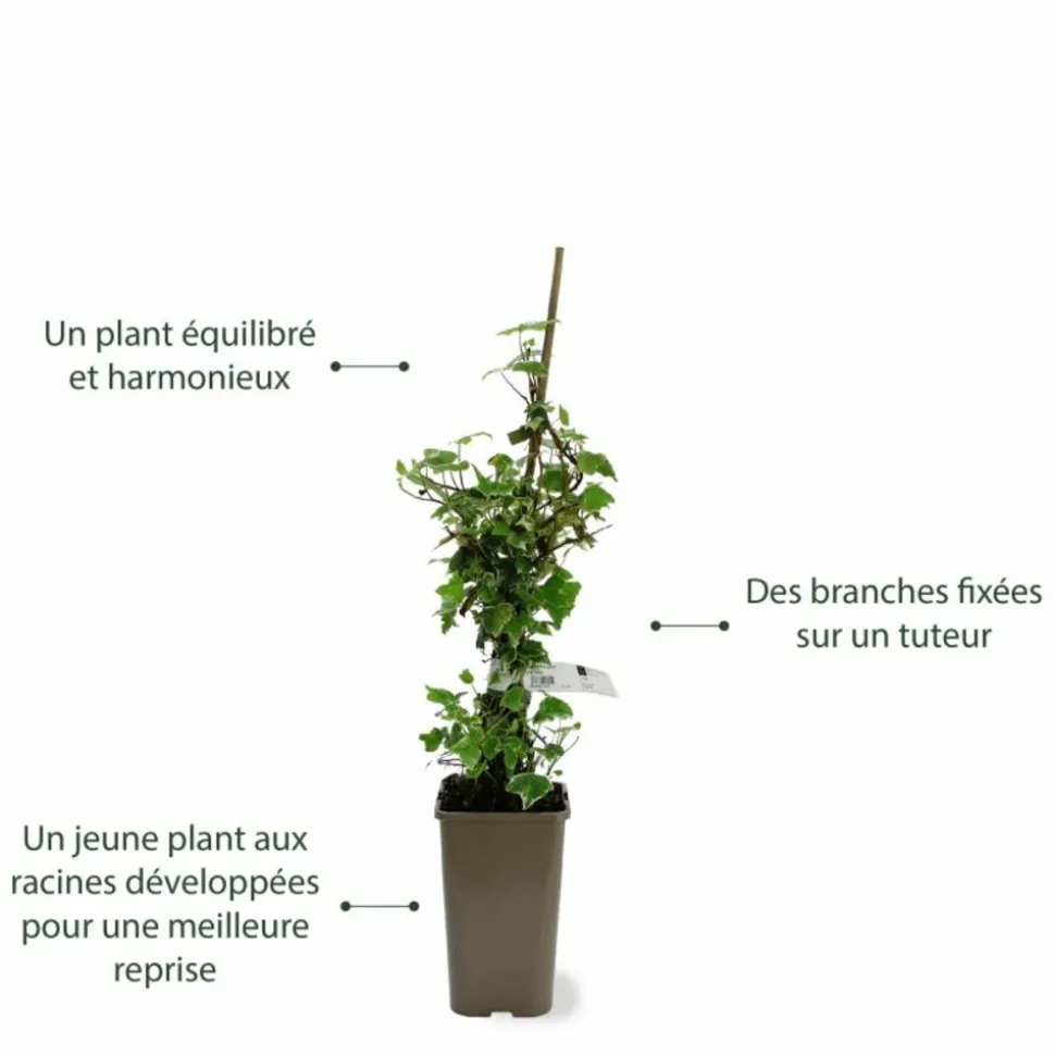 Certifié <> pour sa production éco-responsable, ce lierre allie esthétique et durabilité. Doté d’une excellente résistance au froid jusqu’à -15°C, il convient parfaitement aux climats tempérés.