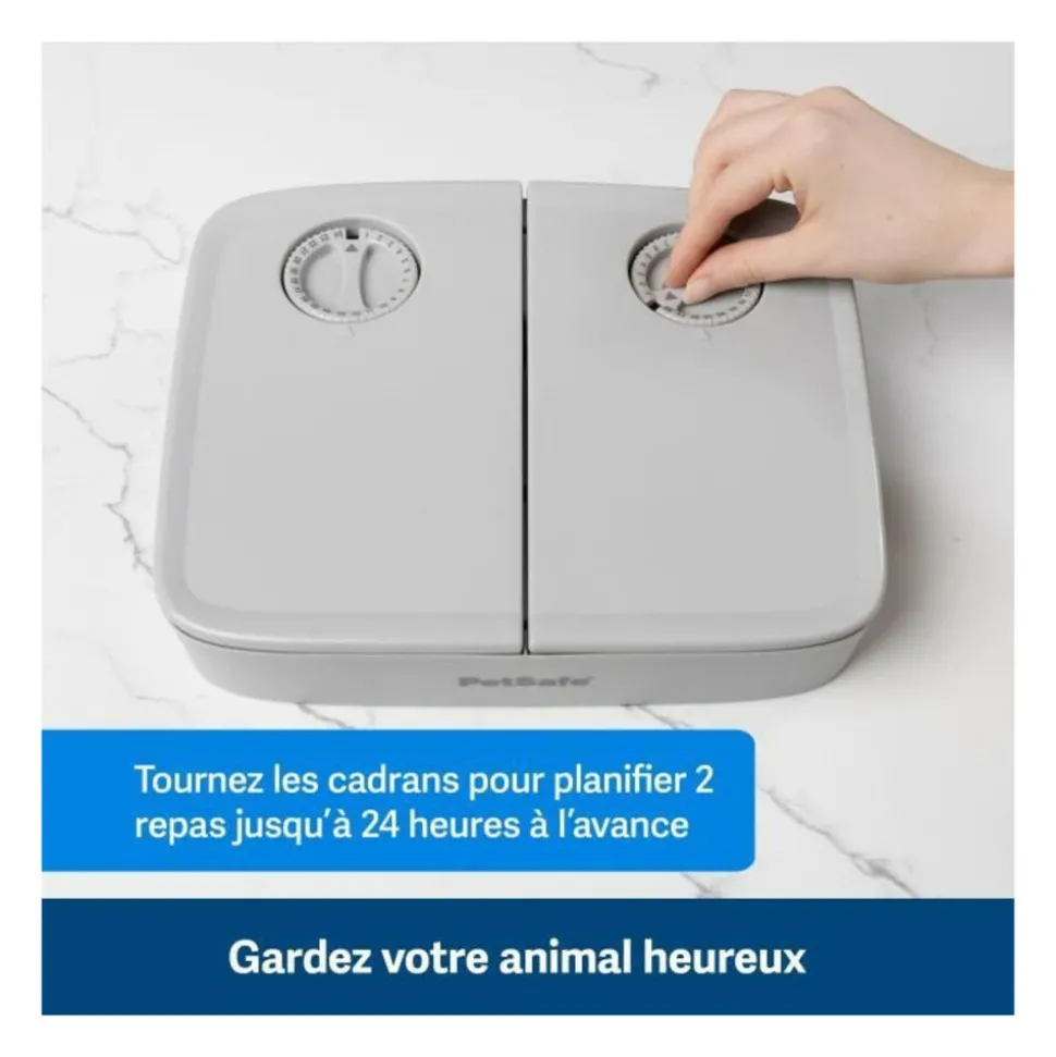 Grâce a ce distributeur automatique 2 repas, rien n’est plus simple que de gérer les habitudes alimentaires de son animal de compagnie, meme lorsque le propriétaire n’est pas a la maison.