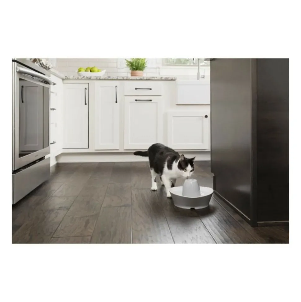Aidez votre chat a rester heureux, en bonne santé et hydraté avec la fontaine en céramique bord du ruisseau PetSafe® pour animaux de compagnie. Les fontaines pour animaux de compagnie mettent en continu de l’eau fraîche et filtrée a disposition de votre animal. Les chats et les chiens sont attirés par l’eau courante ce qui les incite a boire davantage et préserve leur santé. Cette fontaine en eau a une capacité en ea