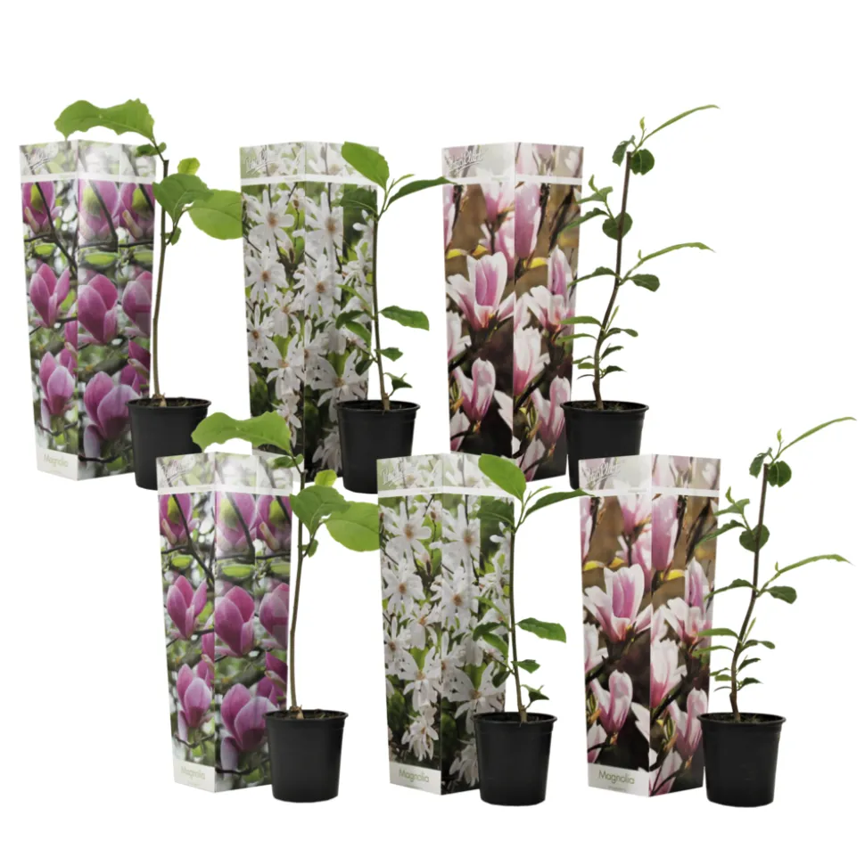 Le Magnolia, plante très rustique, peut être maintenu en tant que grand arbre ou en tant qu’arbuste. Non seulement il est facile à entretenir, mais il présente également de belles fleurs au printemps, qui créent une merveilleuse atmosphère printanière dans votre jardin, balcon ou terrasse. Ce mélange comprend les Magnolias ‘Soulangeana’, ‘Susan’ et ‘Stellata’. Les Magnolia Soulangeana et Stellata sont des arbustes à feuilles caduques, ce qui signifie qu’ils n’ont pas de feuilles en hiver. Le Magnolia Soulangeana convient très bien à un grand jardin mais peut également être planté en grands pots sur un balcon ou une terrasse.