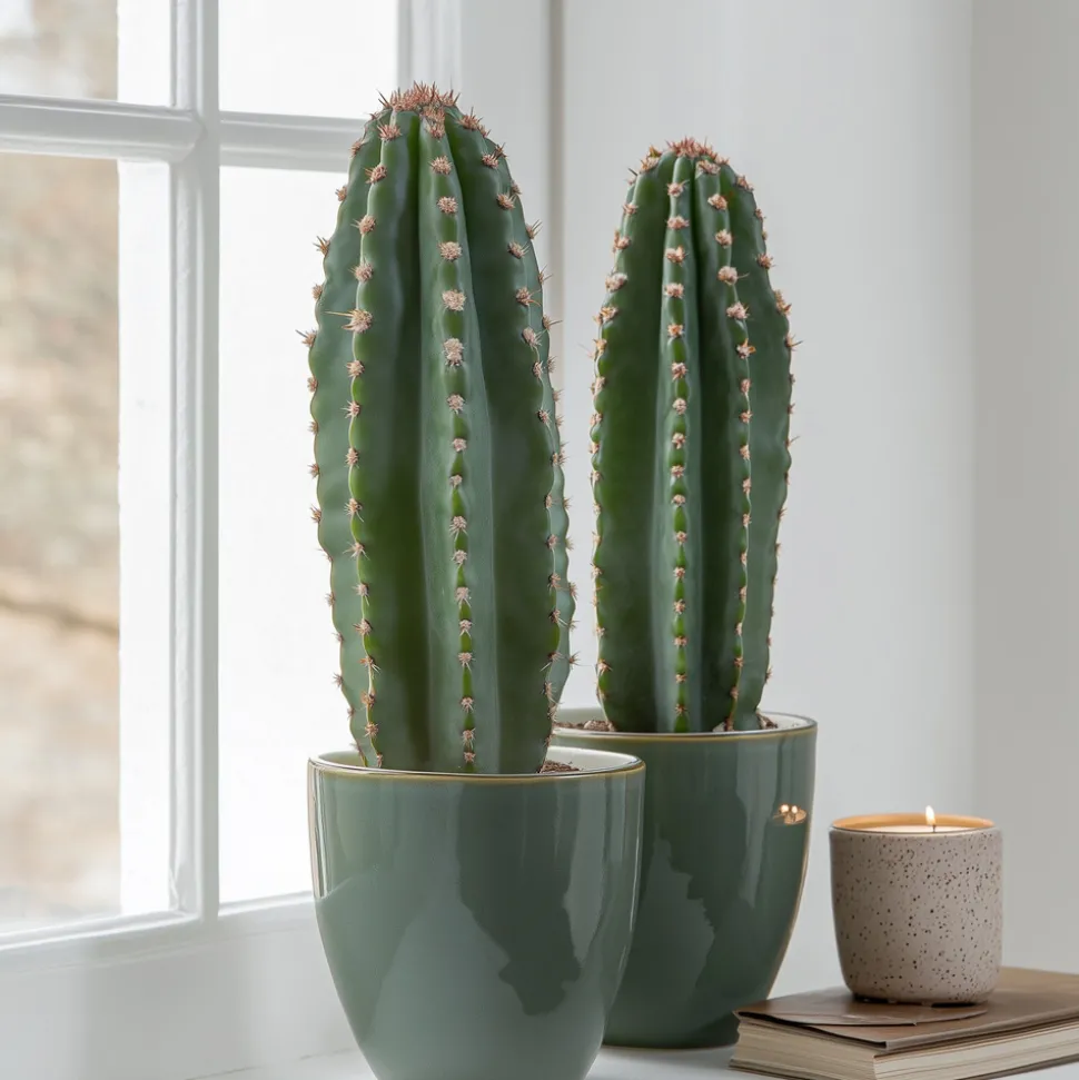 L’Euphorbia Ingens, également connue sous le nom de ‘Cowboy cactus’, est une plante populaire qui est souvent la vedette des blogs de décoration d’intérieur et des médias sociaux. Cette plante s’intègre parfaitement dans les intérieurs modernes, créant une atmosphère désertique dans n’importe quelle pièce. La plante est appelée Cowboy cactus parce qu’on la voit souvent dans les films sur le Far West. Officiellement, l’euphorbe n’est pas un cactus, mais une succulente. Attention, elle possède des épines. Sinon, elle est très facile à entretenir et peut être placée dans de nombreux endroits.