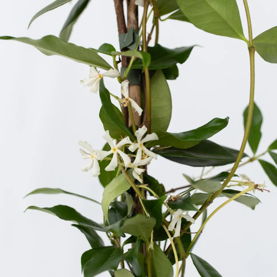 Le jasmin de Toscane est une véritable plante grimpante, c’est pourquoi cette plante est livrée avec un bâton de bambou, car elle a besoin d’un certain soutien pour grimper. Cependant, le jasmin peut être utilisé non seulement comme plante grimpante, mais aussi comme couvre-sol fleuri. La plante préfère le plein soleil ou la mi-ombre et a besoin d’un sol bien drainé. Arrosez donc régulièrement le jasmin, surtout en été. Bien que le jasmin soit résistant jusqu’à -10 degrés Celsius, il est conseillé de couvrir le pot de la plante en cas de fortes gelées.