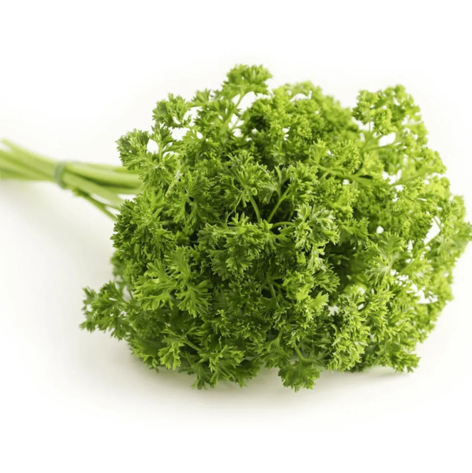 Le persil frisé ‘Afrodite’ est une variété spécifique de persil frisé (Petroselinum crispum) appréciée pour son arôme prononcé et sa texture délicate. Cette plante herbacée appartient à la famille des Apiacées et est largement cultivée pour ses feuilles vert foncé à la texture ondulée distincte, qui ajoutent une saveur fraîche et herbacée à de nombreux plats culinaires.