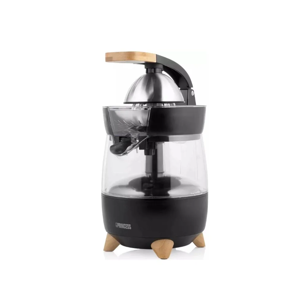Grâce à sa finition en bambou véritable et à son corps noir mat, le presse-agrumes Princess 201862 Citrus Press Pure est un véritable accroche-regard dans toutes les cuisines branchées. Le bec verseur à 3 voies du presse-agrumes est unique en son genre et grâce au système anti-goutte, votre plan de travail restera propre. D’un simple mouvement de la main, vous pouvez également choisir de remplir uniquement un verre ou la carafe entière. Le cône de presse innovant associé au puissant moteur de 300 W garantit un jus parfaitement fraîchement pressé. Idéal pour un beau dimanche matin. L’extracteur de jus est doté d’un bec verseur à 3 voies, la position neutre faisant office de stop-goutte. Appuyez sur le bec verseur et pressez le jus directement dans un verre, idéal si vous n’avez besoin que d’un ou deux verres. Vous pouvez également pousser le bec vers le haut et le jus pressé coulera dans le pichet d’un litre. Remplissez le pichet de jus frais et servez-le directement à toute la famille. Grâce au couvercle inclus, vous pouvez également conserver le jus au réfrigérateur pendant plusieurs jours. De cette façon, même lorsque vous avez peu de temps, vous avez un jus fraîchement pressé prêt. Le presse-agrumes Princess Citrus Press Pure est l’un des produits phares de la série Princess Pure. Tous les appareils de la série Pure se caractérisent par l’utilisation du bambou. Ce matériau durable et résistant à l’usure est non seulement beau à regarder, mais assure également une apparence robuste. De plus, le bambou ne se déforme pratiquement pas, de sorte que les pieds ne se plient pas et que le presse-agrumes ne glisse pas pendant l’utilisation. Acheter un presse-agrumes pour tous les agrumes semble facile, mais dans la pratique, c’est assez décevant. Le levier de pression puissant associé au moteur de 300 W garantit que chaque agrume est pressé facilement. De plus, le cône de presse est conçu pour s’adapter à toutes les tailles d’agrumes , du citron vert à la grenade. Vous pouvez ainsi presser vos agrumes préférés sans changer le cône de presse. Le problème le plus courant avec un presse-agrumes est qu’il faut le nettoyer fréquemment après avoir fait du jus. Ce n’est pas un problème avec le Princess Citrus Press Pure. Le presse-agrumes est presque entièrement démontable, ce qui le rend facile à nettoyer. Les pièces passent également au lave-vaisselle.