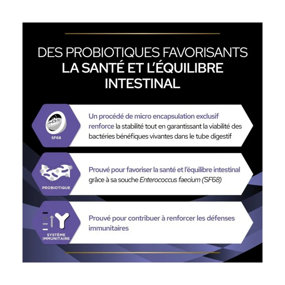 - Probiotique Enterococcus faecium SF68 : soutient la santé intestinale