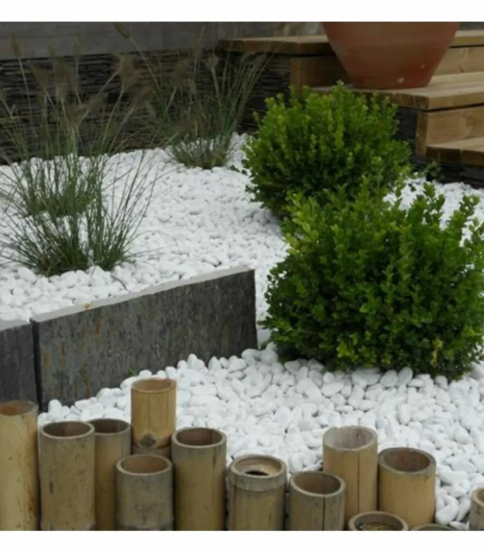 Les galets décoratifs blancs en marbre de Carrare sont une excellente option pour créer des ambiances zen et contemporaines dans vos espaces extérieurs. Leur blancheur immaculée, qui perdure dans le temps, en fait un choix parfait pour apporter une haute finition visuelle à vos massifs et autres aménagements paysagers. Ce paillage minéral décoratif est non seulement esthétique, mais aussi résistant et durable.