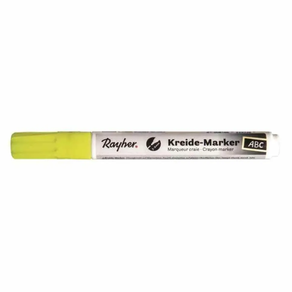 Un marqueur craie jaune vif idéal pour le verre le tableau noir le métal et le plastique, Le marqueur a une pointe de 2 à 6 mm, Ce marqueur est à base d’eau il est à appliquer sur une surface lisse et propre