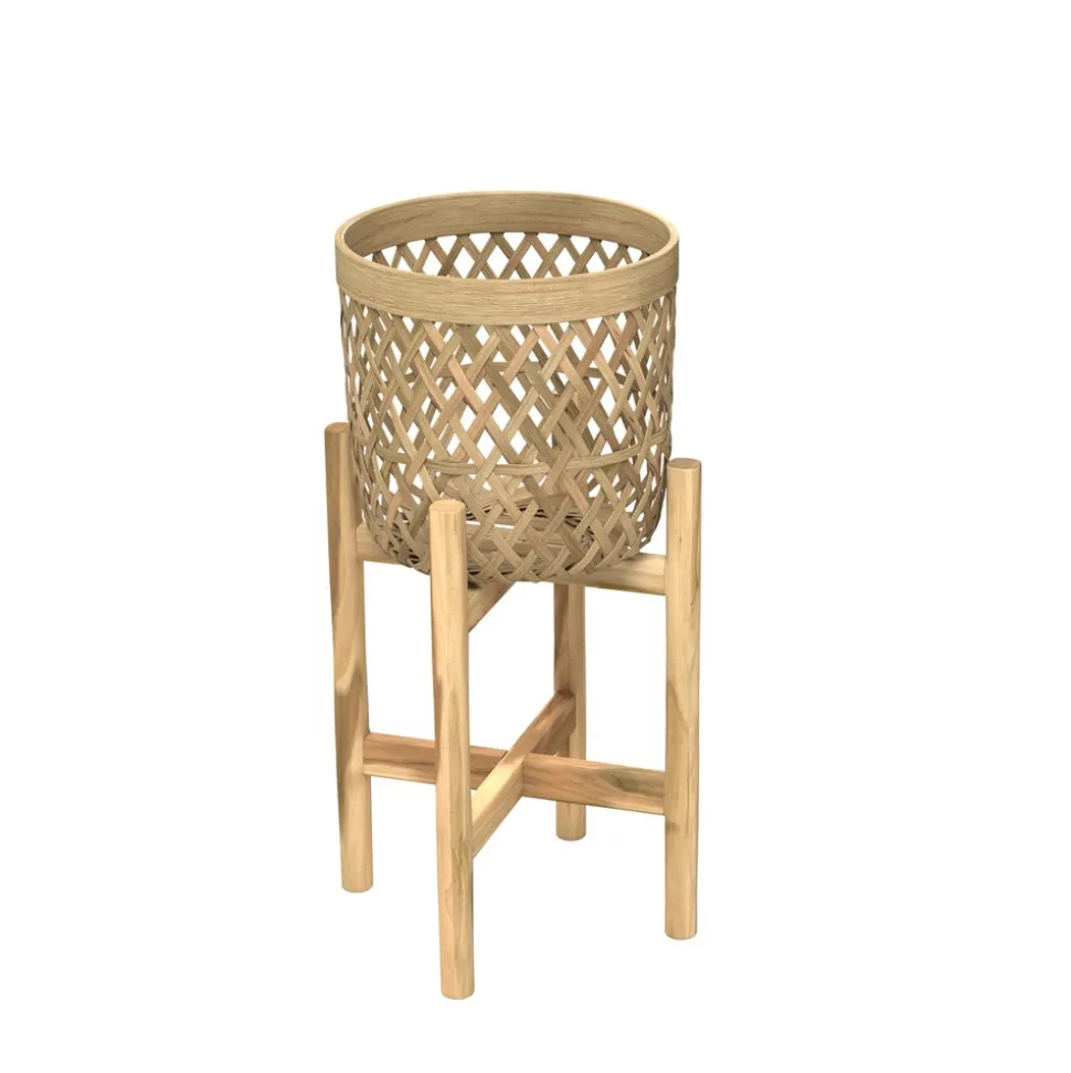 Fonctionnel et facile à faire entrer dans tous les styles de déco, notre cache-pot Mila en teck et bambou (lot de 2) apportera à votre intérieur une touche à l’esprit Jungle. Reposant sur une structure croisée, les paniers Ø25 cm et Ø20 cm vous offriront un jeu de transparence pour un effet très graphique.