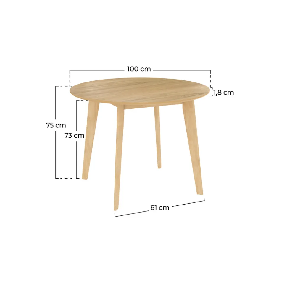 Robuste sur ses pieds en bois d’hévéa massif H 75 cm, notre table ronde Réno Ø100 cm en bois clair s’intègre facilement à votre salle à manger ou pièce à vivre. Pratique et esthétique, elle deviendra le point phare de votre intérieur.
