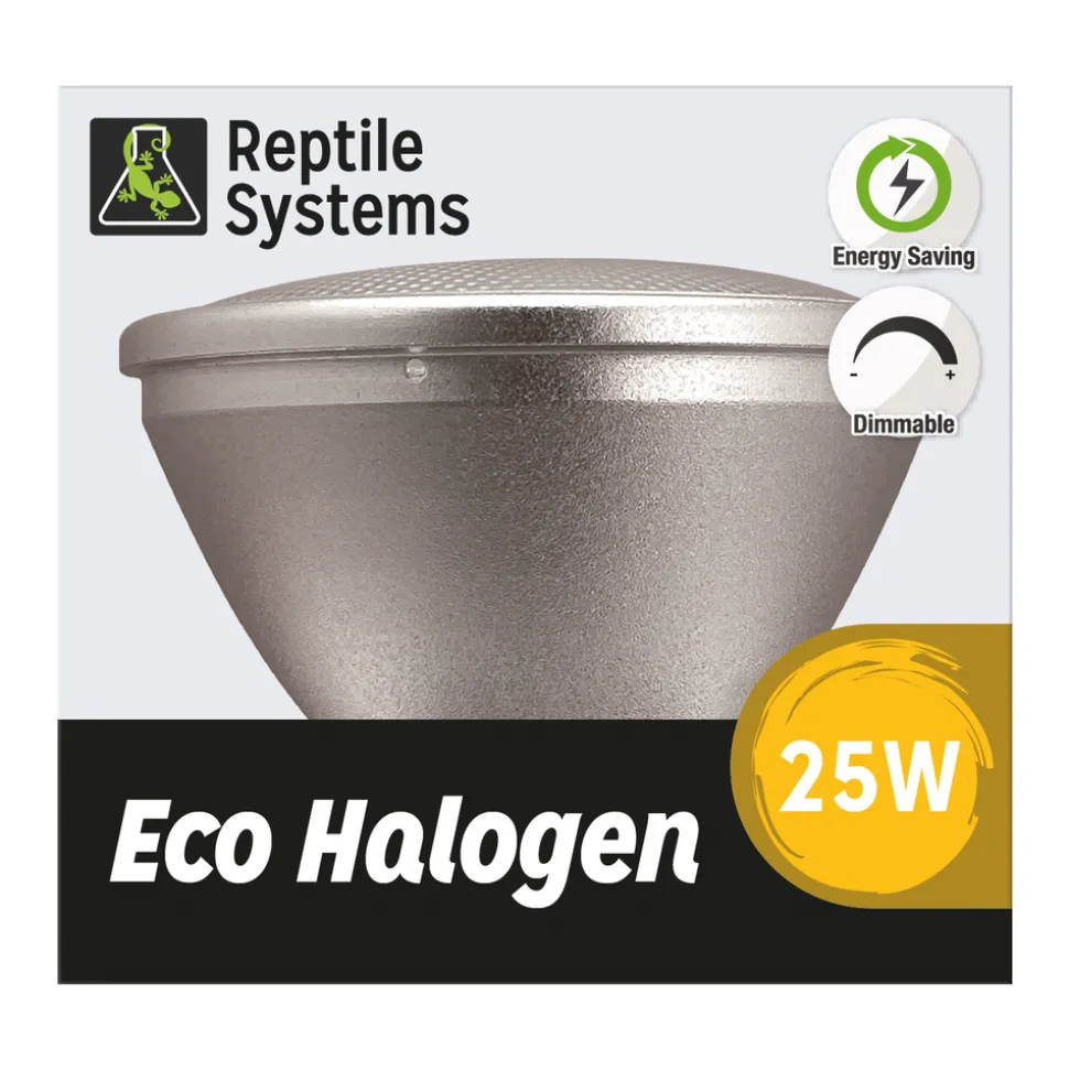 Pour le bien-être et la santé de vos reptiles, vous devez disposer d’équipements sérieux et à la fiabilité reconnue. Cette lampe coche toutes les cases exigées. L’Eco Halogen de Reptile Systems est une solution innovante pour apporter de la chaleur à votre animal et vous permettant de changer uniquement l’ampoule, tout en réduisant ainsi les coûts totaux d’utilisation. Pour changer l’ampoule halogène, il suffit de dévisser le culot céramique et de changer l’ampoule. Ce procédé permet de réduire de 97,5 % le gaspillage total de la lampe. Le coût de revient est ainsi plus faible. Vous pouvez également passer d’une ampoule blanche UVA à une ampoule rouge IR, ce qui vous donne une grande polyvalence d’action grâce aux 4 puissances différentes (25/50/75/100W). Vous disposerez ainsi d’une solution dimmable afin de faire varier la quantité de lumière produite par votre source lumineuse en terme de Lumen distribués. Le réflecteur en aluminium de haute qualité permet quant à lui de concentrer la chaleur et la lumière. Les trous d’aération sur le col de la lampe et autour du quartz favorisent le phénomène de convection et donc de dissipation thermique ce qui assure une plus longue durée de vie par rapport à une lampe halogène ordinaire. Lampe en quartz renforcé, résistant aux éclaboussures. Kit Lampe eco halogène blanche pour terrarium 25W.