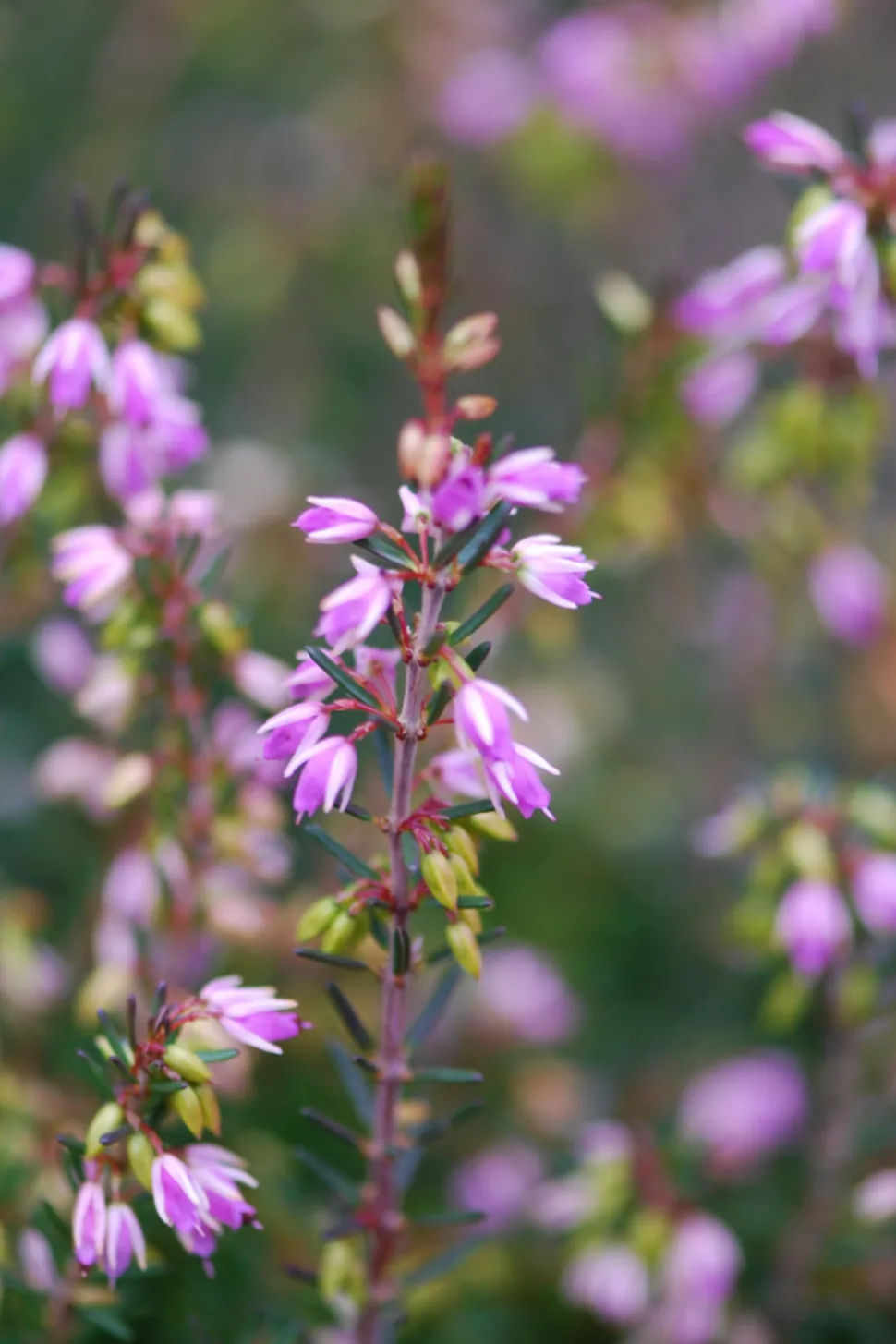 Cet arbrisseau forme une belle touffe d’un feuillage persistant, fin, en forme d’aiguilles en verticilles, d’un vert clair très vif. Avec une hauteur et une largeur de 50 cm, cette bruyère forme une touffe au port tout à la fois étalé et érigé, bien compact, qui forme un excellent couvre-sol, par exemple au pied d’arbustes de haie. De croissance plutôt lente, cette bruyère, rustique jusqu’à – 15 C, se montre très vigoureuse.