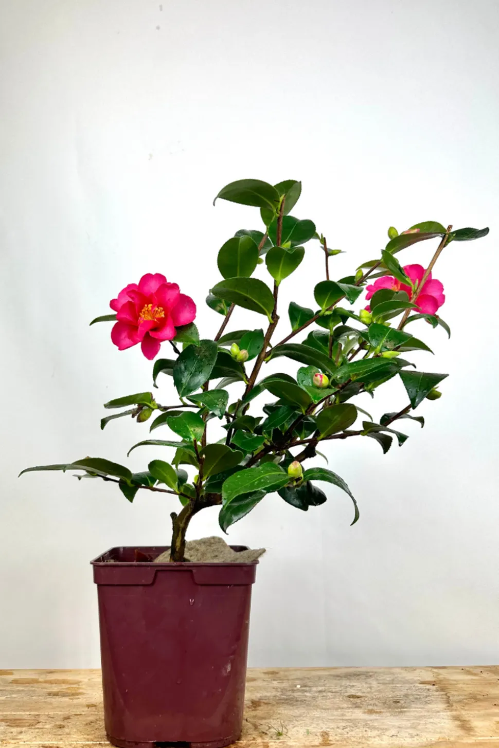 Dire que ce camélia brouille les pistes est un euphémisme ! En effet, sa floraison en grandes fleurs simples oscille entre le rose vif à presque rouge. Entre octobre et janvier, ce camélia se couvre de fleurs de belle taille à la teinte évoluant entre le rose et le rouge, qui dégagent un léger parfum. Les fleurs, très durables, se succèdent en continu durant tout l’hiver. Ce camélia apporte ainsi une pointe de lumière et d’éclat à une saison souvent grisâtre.