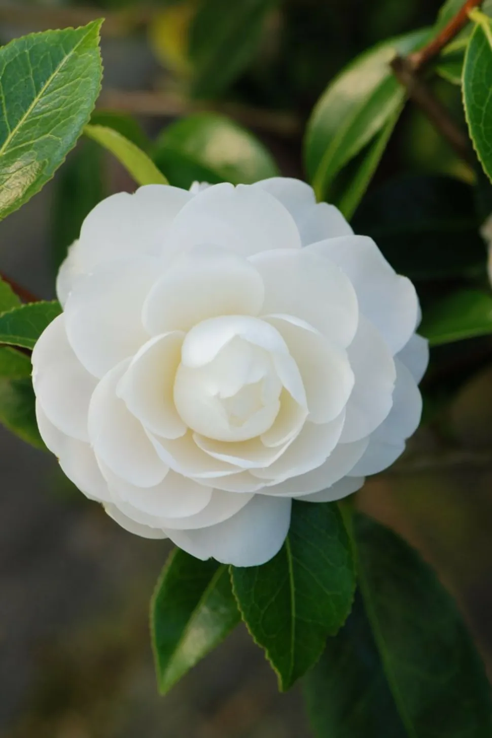 L’élégance même, l’excellence de sa fleur imbriquée, d’un blanc pur, nous ravit par sa floraison de février à avril/mai. Ce sublime Camélia est d’obtention bretonne, son obtenteur Fanch Le Moal (un grand découvreur de Camélias) a participé a sa création. Avec son port compact, ce Camélia de végétation moyenne atteindra le mètre à 10 ans. Son feuillage vert clair met en avant la pureté de sa fleur.