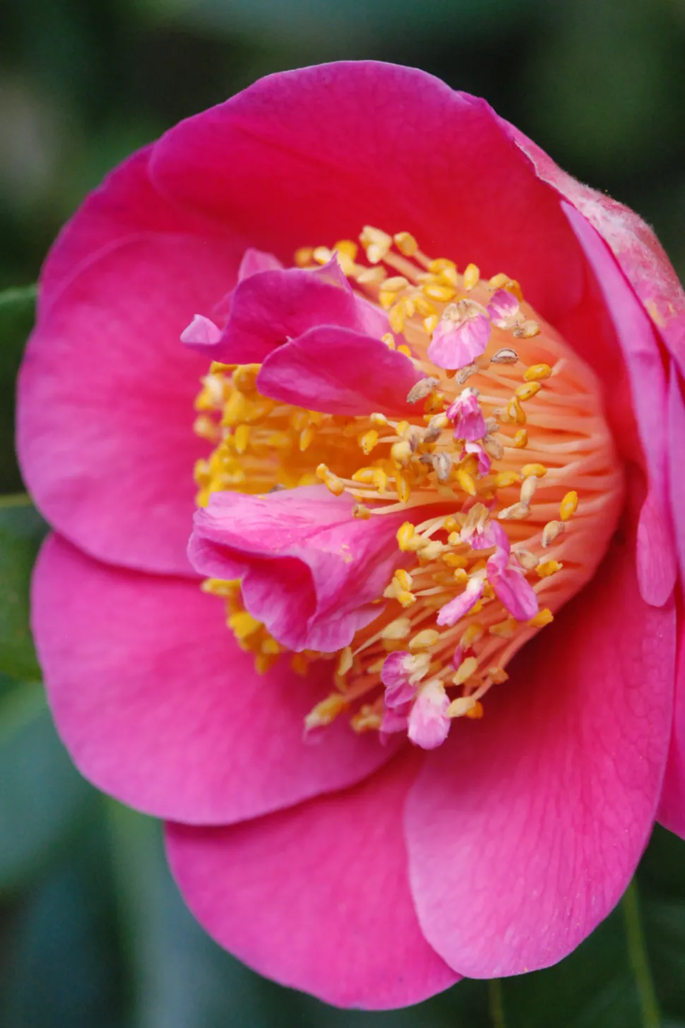 Voilà un camélia qui, par son nom vernaculaire, nous transporte directement en Bretagne. Il s’agit en effet d’une obtention du collectionneur amateur Fañch Le Moal qui depuis les années 1970 hybride et crée de nouvelles variétés de camélias. Cette variété de mi-saison propose une floraison de toute beauté en rose vif. De janvier à avril, éclosent de très grandes fleurs semi-doubles ornées au centre d’un gros c’ur de longues étamines jaunes à orangées. Ces fleurs sont d’autant plus remarquables qu’elles sont mises en valeur par un feuillage vert sombre très brillant sur le dessus. Les feuilles persistantes, elliptiques et vernissées, affirment leur présence tout au long de l’année.