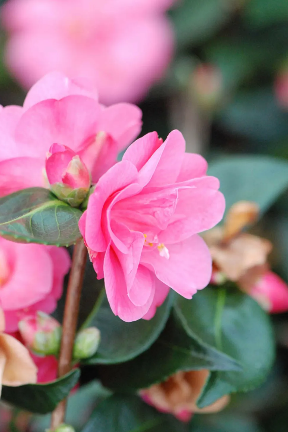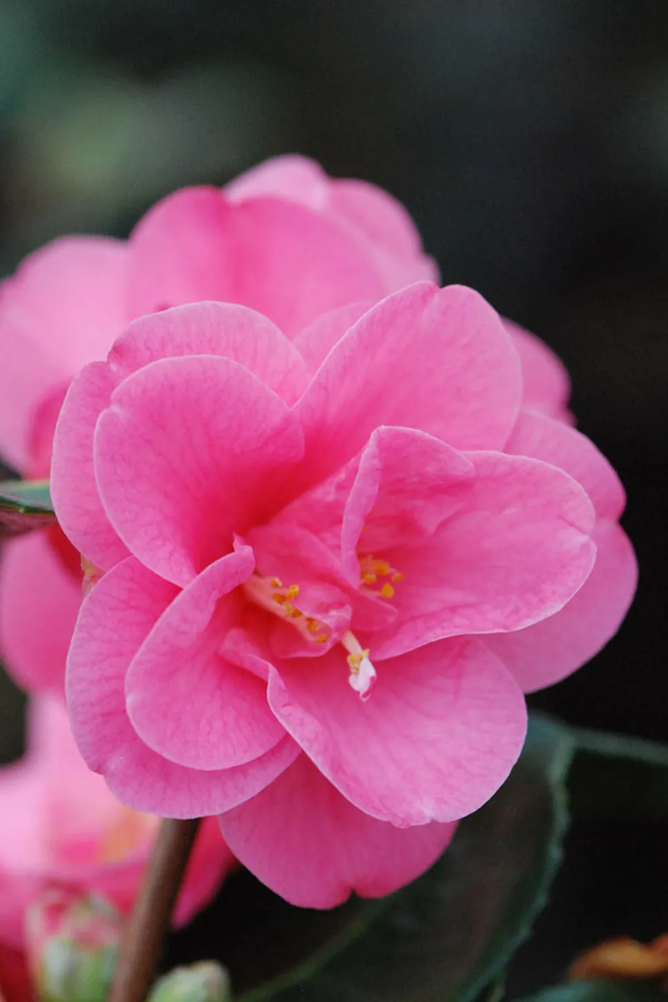 Éveil du printemps…Un nom tout en poésie pour ce camélia remarquable par sa floraison abondante et durable. De janvier-février à avril, cette variété de camélia offre une telle profusion de fleurs qu’elles en cachent le feuillage pourtant persistant. Bien que de petite taille, ces fleurs compensent ce handicap par leur abondance. Une abondance d’autant plus remarquable que les fleurs semi-doubles, délicatement parfumées, arborent un rose soutenu et lumineux, rehaussé d’un bouquet d’étamines jaune. Quant au feuillage, au vert mat brillant, riche et profond, il forme un écrin de choix pour la floraison.