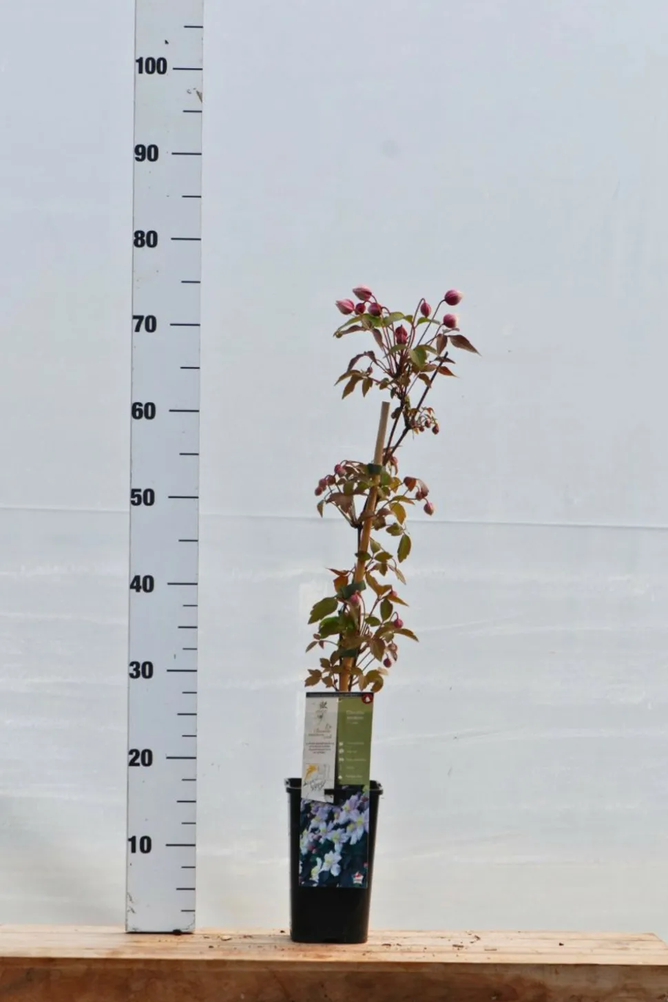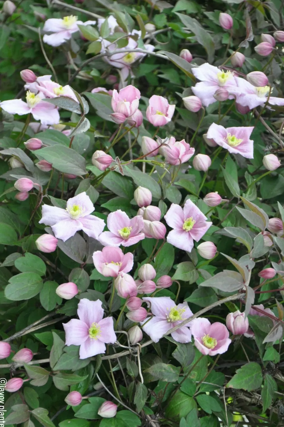 Un léger parfum pour cette Clématite des montagnes à floraison rose tendre. Nombreuses, les fleurs de la Clématite ‘Mayleen’ sont simples, de petite taille, pas plus de 6 cm, composées de 4 pétales et d’un coeur d’étamines jaune poussin. Sa floraison hâtive en fait une variété très intéressante puisqu’elle va commencer à fleurir dès le mois de mai et peut avoir des remontées de fleurs en plein été !