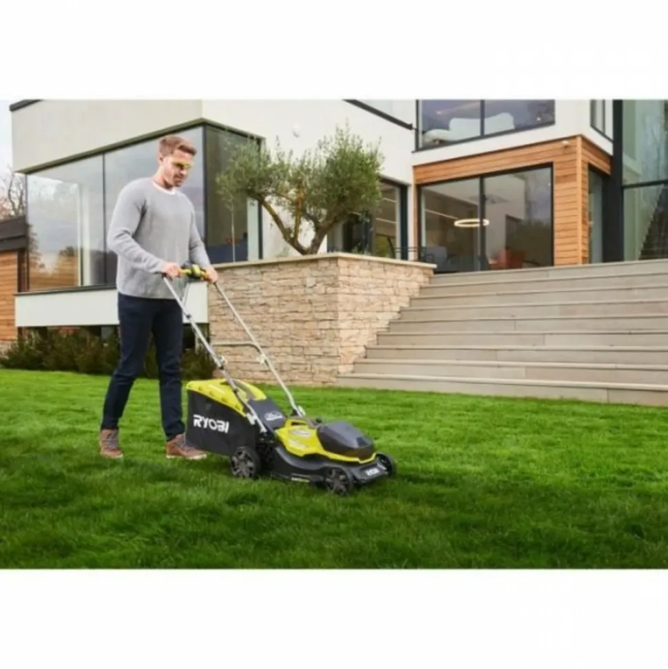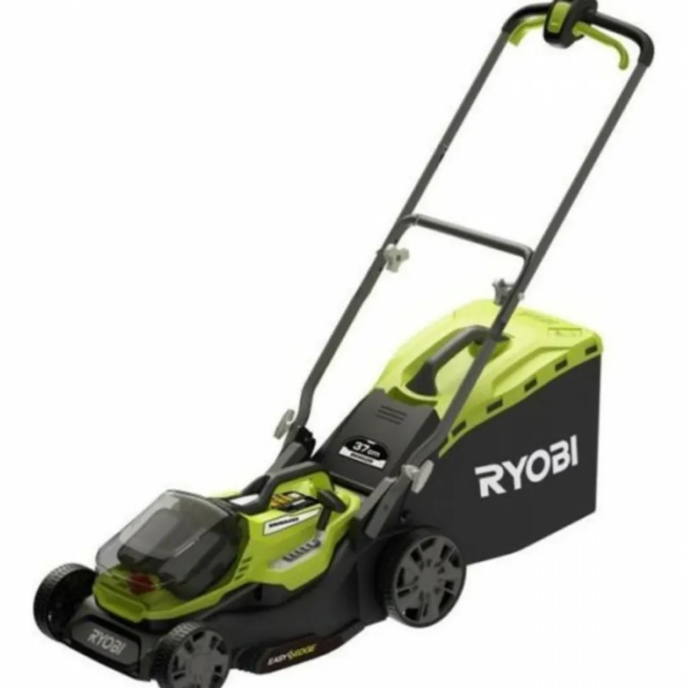 Tondeuse poussée 18V – Brushless / moteur sans charbons – Ø coupe 37 cm – ramassage et mulching – 1 batterie lithium+ 18V 5,0 Ah et 1 chargeur rapide 2,0 A. La tondeuse poussée 18V Brushless de RYOBI est équipée d’un moteur sans charbons pour un couple élevé et une longévité préservée.