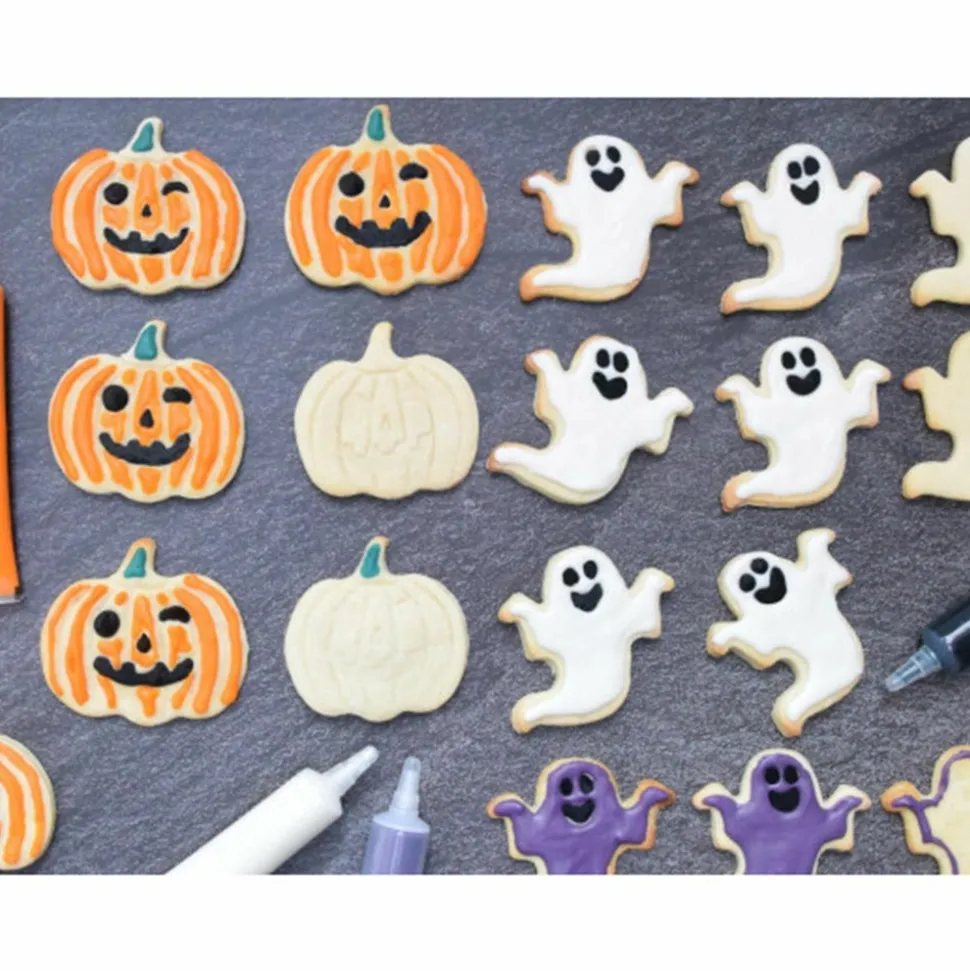Lot de 4 stylos choco au coloris d’Halloween : noir, violet, orange et blanc. Valeurs nutritionnelles moyennes pour 100 g / Valeurs énergétiques : 2450 kJ 鈥ères grasses : 38 g – dont acides gras saturés : 36 g / glucides : 58 g – dont sucres : 58 g / fibres : 5 g / protéines : 3,5 g / sel :