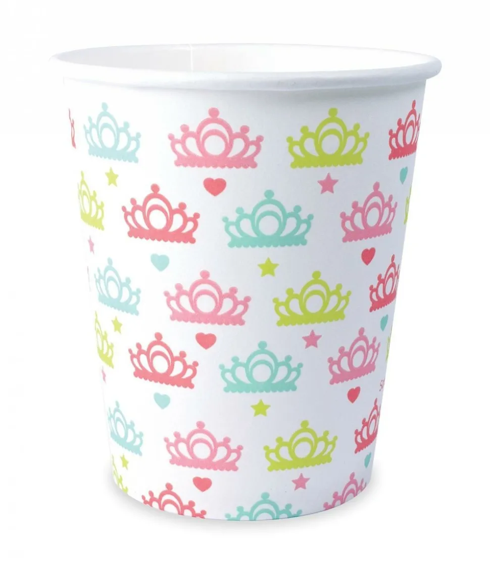 Cet ensemble de 8 gobelets cartonnés aux motifs couronnes de princesse sont idéaux pour décorer une table à l’occasion de différents événements : anniversaire, mariage, baptême鈥éatifs avec les articles de fête et d’anniversaire de ScrapCooking Party !