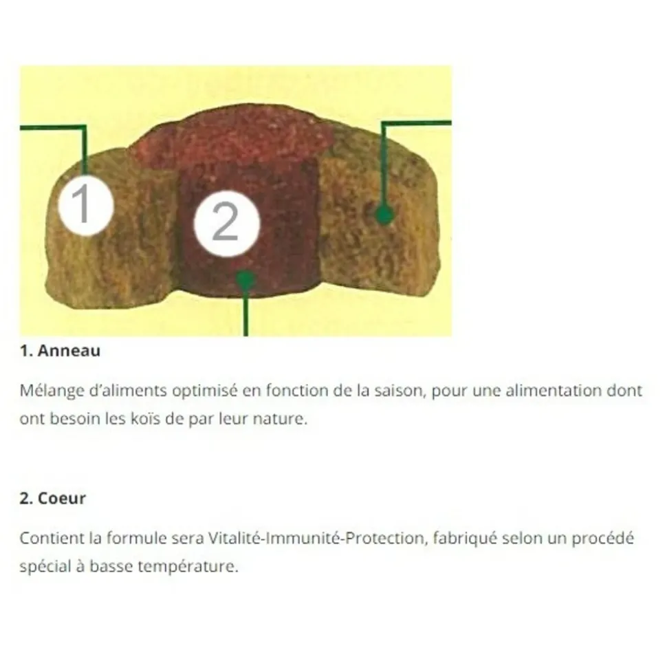 Nourriture spiruline sera pond pour poisson de bassin de jardinnourriture carpes koisera koi professional spirulina aliment composé spécial couleurs garantit, grâce à sa teneur particulièrement élevée en spiruline riche en carotène et en algues haematococcus riches en astaxanthine, une intensité unique des couleurs, avec une séparation nette des différentes zones et un éclat soyeux. Les parties blanches ne prennent pas une coloration jaune disgracieuse, mais restent d’un blanc pur. Des protéines de qualité supérieure veillent à une croissance saine et équilibrée.le procédé de co-extrusion unique de serapond permet de combiner des matières premières traitées de manières différentes. L’anneau contient des matières premières naturelles de qualité supérieure, telles que la spiruline et l’algue haematococcus, pour des couleurs uniques et une alimentation conforme. Le cœur se compose, entre autres, de vitamines, de minéraux et d’oligo-éléments essentiels pour une croissance saine et un système immunitaire fort.sera koi professional spirulina est une nourriture carpe koï composé spécial couleurs peut être donné toute l’année, dès que la température de l’eau atteint 8°c.Aliment complet pour tous les koïsmode d’emploinourrissez les poissons en complément tout au long de l’année dès que la température se situe au-dessus de 8°c. Ne donner que de petites quantités que les poissons peuvent absorber en peu de temps.Ingrédientsfarine de poisson, amidon de maïs, farine de blé, gluten de blé, algues spiruline (6,3 %), germes de blé, levure de bière, huile de poisson, mannane-oligosaccharides (0,4 %), algues haematococcus, krill, ortie, luzerne, herbes, perna canaliculus, algues marines, paprika, persil, épinard, carottes, ail.Constituants analytiquesprotéines brutes 39,0 %, matières grasses brutes 10,0 %, fibres brutes 4,3 %, humidité 5,3 %, cendres brutes 6,4 %.Additifsvitamines et provitamines : vit. A 37.000 ui/kg, vit. D3 1.800 ui/kg, vit. E (d-l-acétate de tocophérol) 120 mg/kg, vit. B1 35 mg/kg, vit. B2 90 mg/kg, vit. C stab. (l-ascorbyle monophosphate) 550 mg/kg.