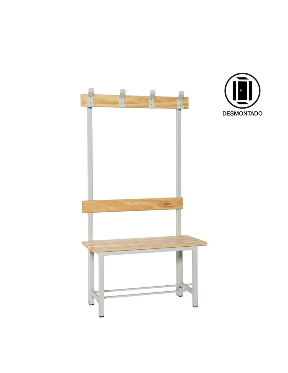 Banc de vestiaire avec structure en métal peint et assise à lattes en bois. Dimensions 2000*475*320 mm Expédié démonté