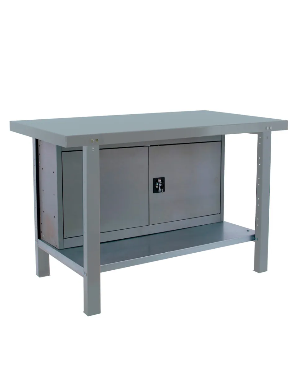 Établi avec vis et plateau en métal, et dispose d’une étagère inférieure qui supporte 300 kg, offrant une grande résistance à l’établi. Il est de couleur GRIS. Il dispose d’une armoire métallique pour ranger les outils et accessoires d’une capacité de 50 kg. Les dimensions de cet établi sont : 830x1500x730 mm. Le plan de travail principal a une capacité de charge de 600 kg. Il est fabriqué en Europe par Simonrack et est facile à assembler en suivant les instructions.