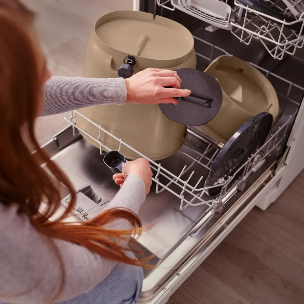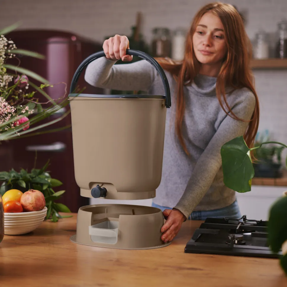 Bokashi Organko Essential est different des autres composteurs. Il est fabrique a partir de plastiques recycles post-consommation. En d’autres termes, il s’agit de plastique recycle issu de produits mis au rebut, qui sont collectes dans des conteneurs dedies aux emballages ou au plastique.Bokashi Organko Essential est donc le reflet de notre et de votre respect de la planete Terre pour un avenir meilleur et plus sain.Lors de la methode bokashi, l’utilisation de son bokashi contenant des micro-organismes efficaces empeche les aliments organiques de pourrir. Les dechets organiques fermentent a la place, ce qui permet de collecter les dechets organiques sans mouches ni odeurs. Enfin, le volume des dechets organiques dans la cuisine est reduit de 25 %.Ce composteur d’intérieur possède plusieurs atouts :· Il est doté d’un bouchon vous permettant de profiter des avantages du thé de compost sans avoir à manipuler les déchets.Le compacteur fait toute la largeur du seau, ce qui permet de compacter les déchets efficacement et sans se salir.L’ouverture et la fermeture de celui-ci est très simple.