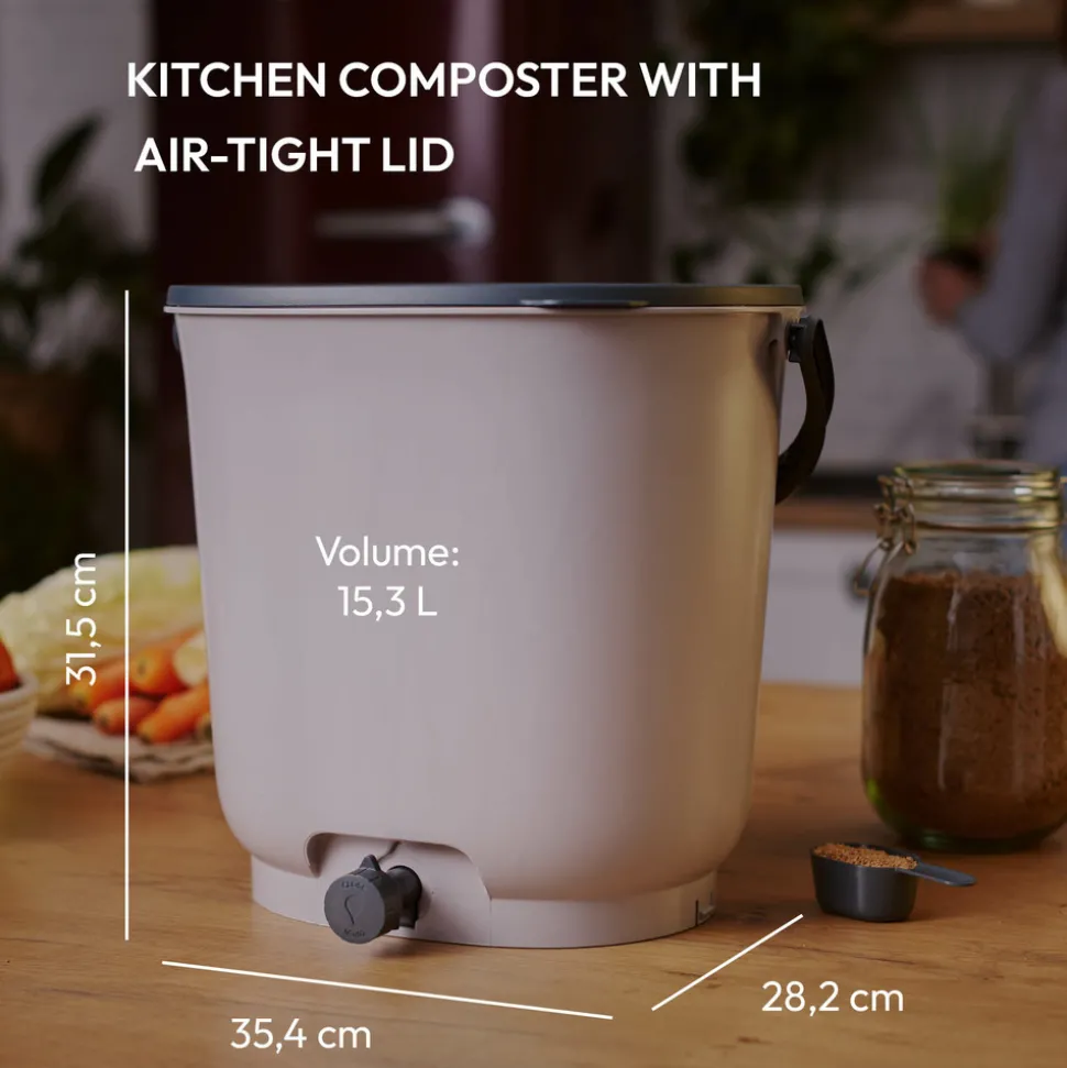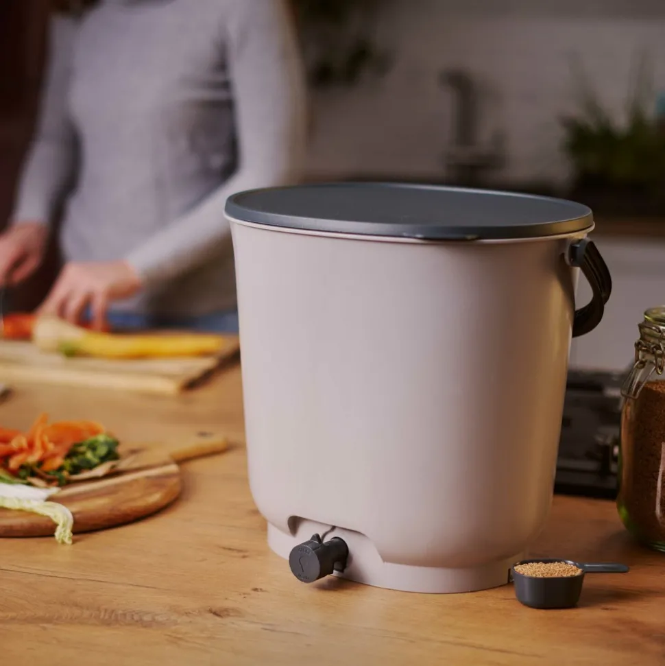 Bokashi Organko Essential est different des autres composteurs. Il est fabrique a partir de plastiques recycles post-consommation. En d’autres termes, il s’agit de plastique recycle issu de produits mis au rebut, qui sont collectes dans des conteneurs dedies aux emballages ou au plastique.Bokashi Organko Essential est donc le reflet de notre et de votre respect de la planete Terre pour un avenir meilleur et plus sain.Lors de la methode bokashi, l’utilisation de son bokashi contenant des micro-organismes efficaces empeche les aliments organiques de pourrir. Les dechets organiques fermentent a la place, ce qui permet de collecter les dechets organiques sans mouches ni odeurs. Enfin, le volume des dechets organiques dans la cuisine est reduit de 25 %.Ce composteur d’intérieur possède plusieurs atouts :· Il est doté d’un bouchon vous permettant de profiter des avantages du thé de compost sans avoir à manipuler les déchets.Le compacteur fait toute la largeur du seau, ce qui permet de compacter les déchets efficacement et sans se salir.L’ouverture et la fermeture de celui-ci est très simple.