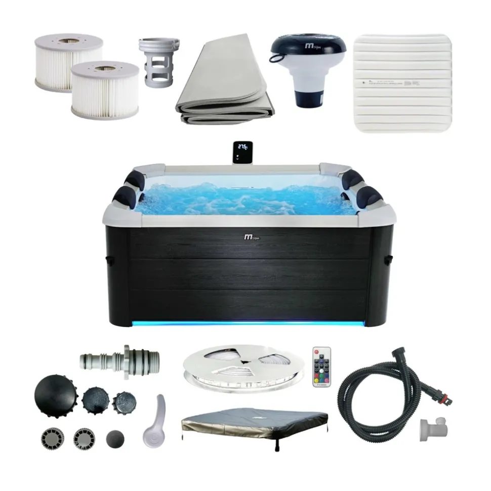 Besoin d’un moment de détente avec vos proches ? Choisissez le SPA Oslo Plus et ses nombreuses options pour vous la couler douce.Ce SPA OSLO Plus comprend : – Un boitier de contrôle tout-en-un- Une vessie gonflable- Une couverture de spa à boucle- Un tapis de sol pliable- Un distributeur de produits chimiques- Une bande LED- Un lot de 2 cartouches filtrantes- Base de la cartouche filtrante- Minuterie (économie d’énergie)- Ozonateur 5,5W + Traitement désinfectant UVCaractéristiques produitsHydromassages système 4 coussins WIFI compatible avec Android et IOSPoids net : 125,7 kgDimensions extérieures : 180 cm x 65 cmDimensions intérieures : 160 x 160 x 65 cmHauteur du niveau d’eau : 44cm Possibilité de différer la chauffe de l’eau : Oui, jusqu’à 99 heuresNombre de jets d’air : 140Télécommande : Filaire étancheFonctionnalités de la télécommande : Réglage température, bulles, chauffage, filtration, ozonateur et verrouillage des touchesAlerte de changement de filtre : OuiProtection avancée contre le gel : OuiLiner intérieur en PVC épais : 6 couches, renforcé Rhino TechRaccord tuyau d’arrosage : Pour l’évacuation d’eau (vidange)Bâche isotherme : IncluseChauffage 2200W et pompe (MDC 12V/25W) inclus Système UV : Oui