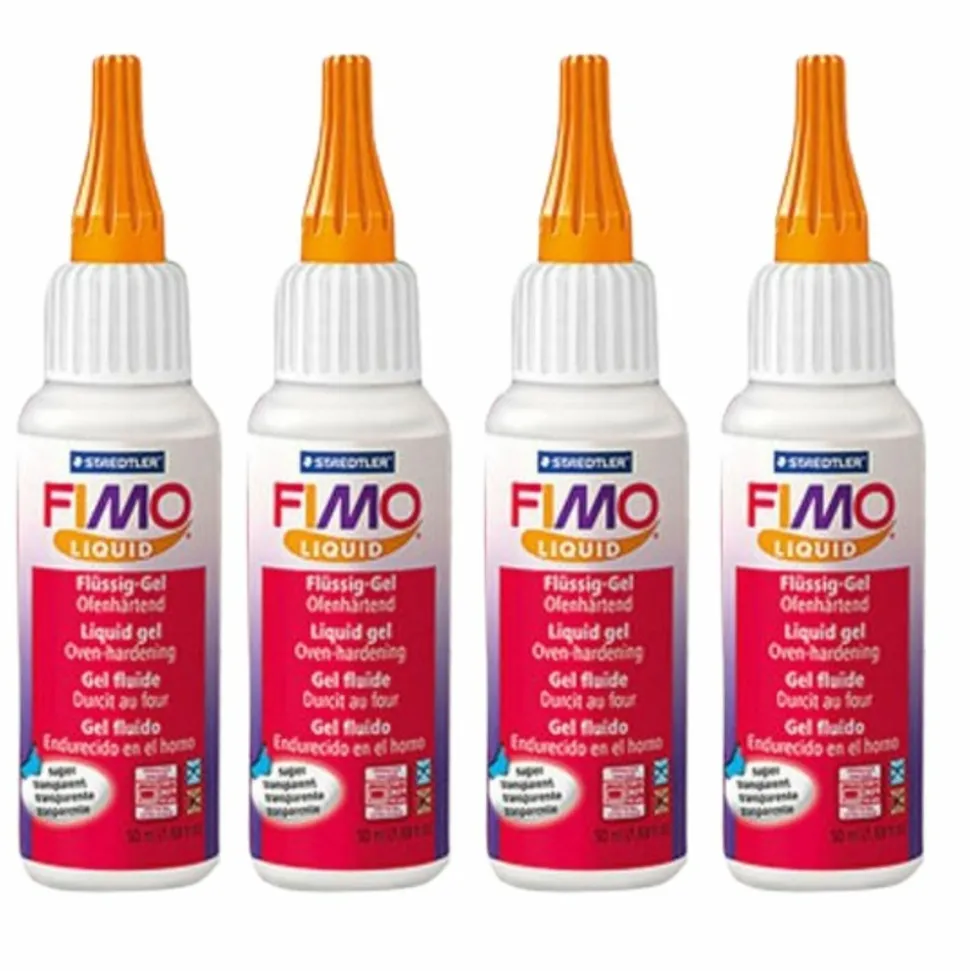4 bouteilles de 50 ml de pâte FIMO Soft. La pâte polymère liquide transparente est utilisée dans différentes techniques de transfert d’images, d’inclusions et décorations sur contenants en verre. Flexible et très transparente aprés cuisson dans un four traditionnel a 130°, c’est aussi le complément idéal des pâtes FIMO classic, soft et effect. Vous pouvez colorer la pâte polymère liquide avec les colorants liquide pour bougie, également disponibles sur Youdoit.