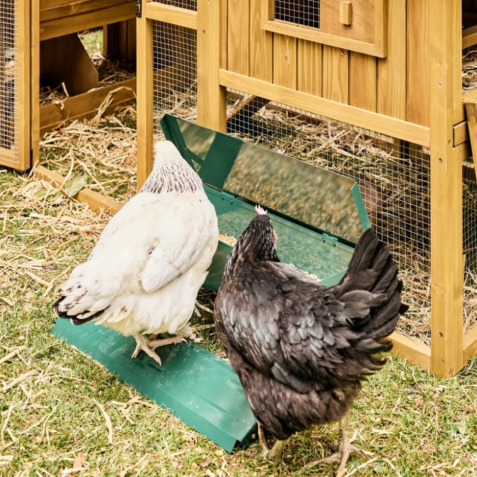 Les + produitCapacité de 5kg de nourritureAutonomie des poulesEvite le gaspillage alimentaireStockez jusque 5kg de nourriture dans cette mangeoire à poules. En acier galvanisé, elle peut s’utiliser en extérieur. Vos poules peuvent se nourrir toute seule en appuyant sur la pédale qui soulèvera le couvercle, à la condition qu’elles pèsent au minimum 500 grammes. Elle seront alors plus autonomes et cela évitera le gaspillage alimentaire
