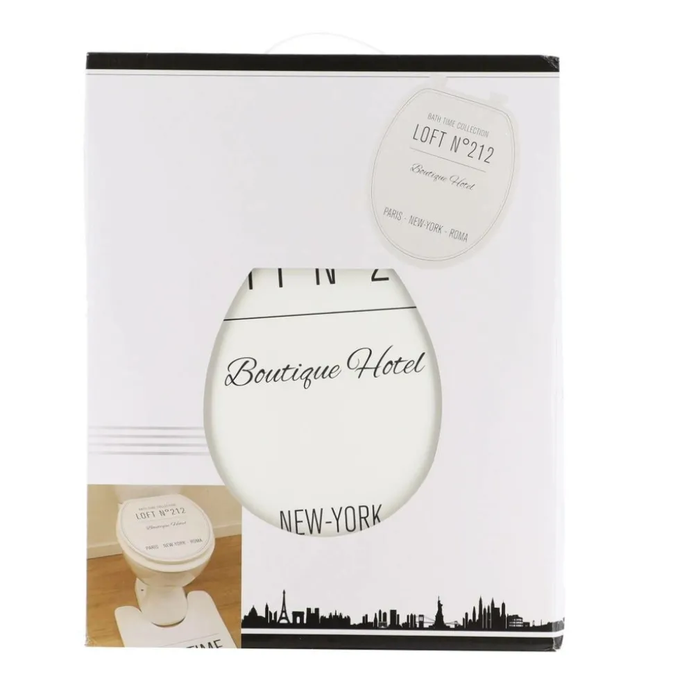 ABATTANT WC 18 POUCES MDF COUVERCLE DESIGN IMPRIME ET ATTACHES PLASTIQUE – NEO RETRO BLANC – Tendance