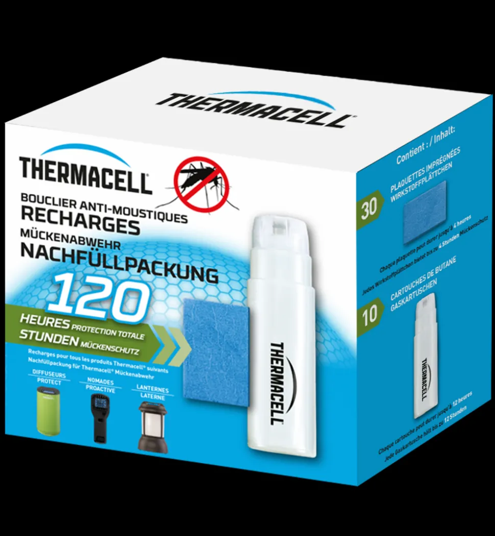 – S’utilise avec tous les boucliers anti-moustiques de la gamme Thermacell® : diffuseurs, lanternes et portables nomades.