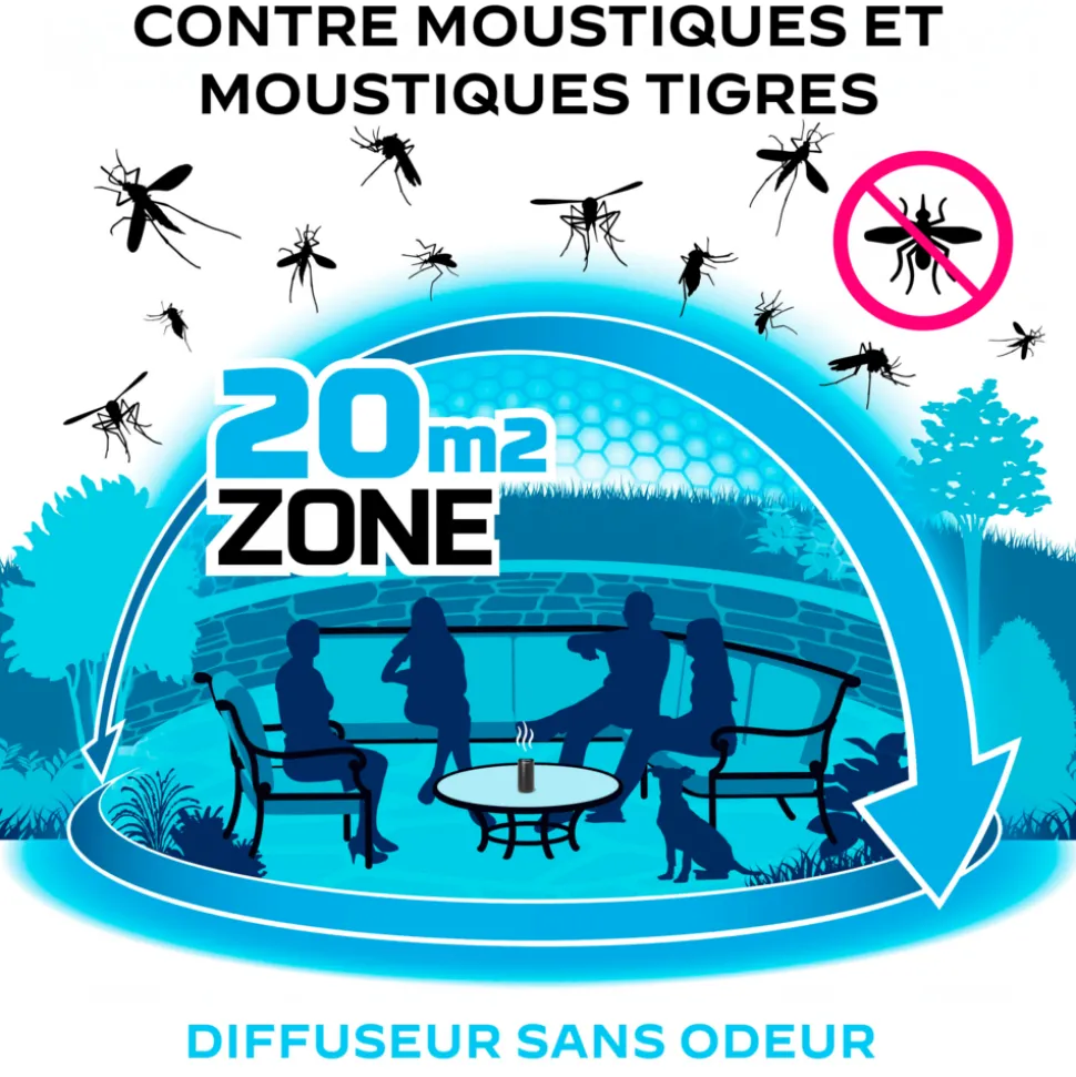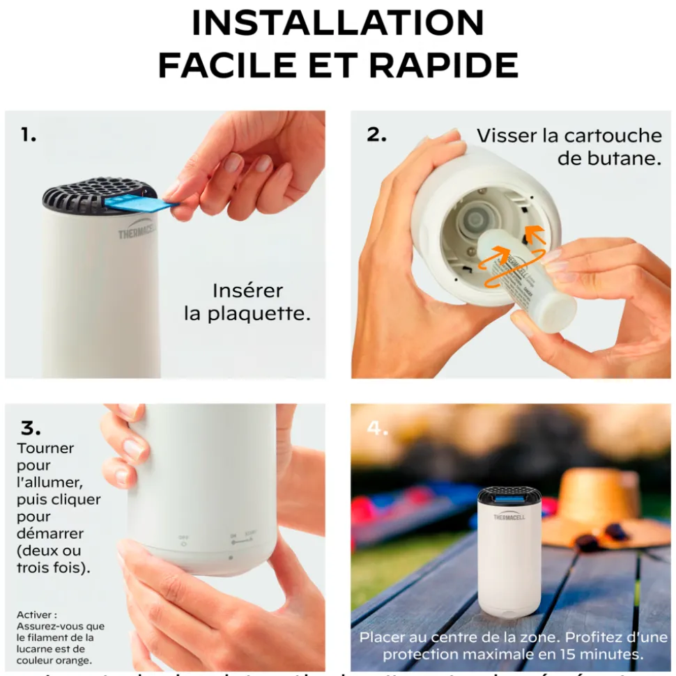 – Le diffuseur Thermacell® assure une protection totale des extérieurs de vie (terrasses, patio, piscine&hellip) contre les principaux types de moustiques et ce quelques minutes seulement après sa mise en route.