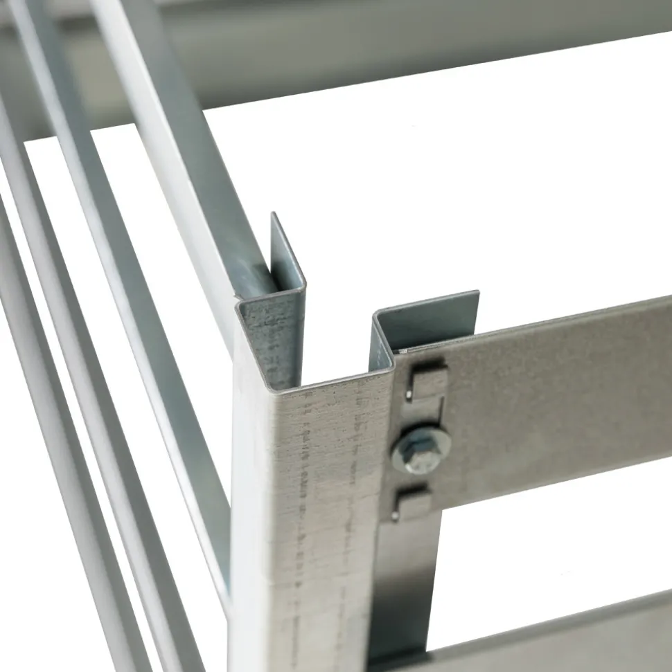 – épaisseur de la tôle : 1,5 mm (poteaux d’angle), 1 mm (poteaux transversaux).