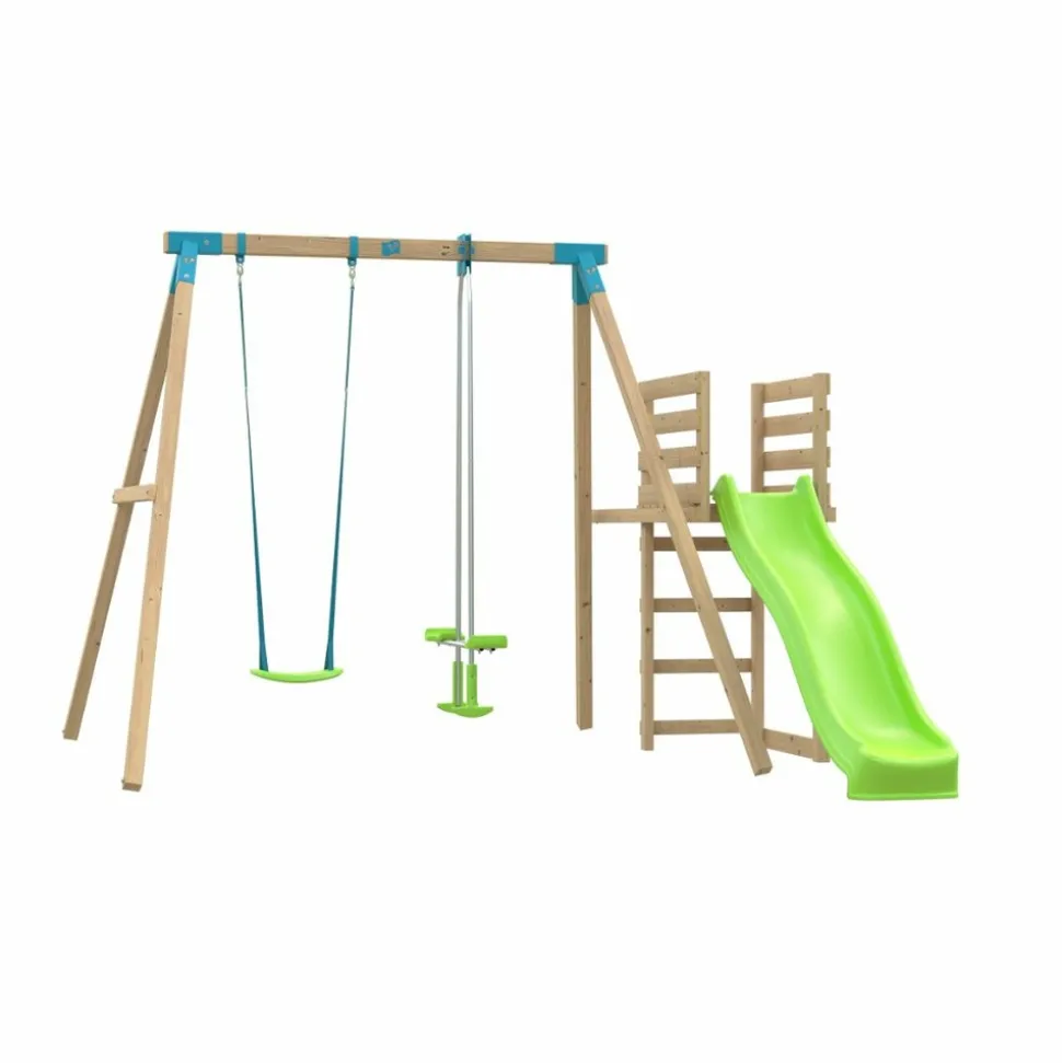 STATION AUBÉPINE TP TOYS BOIS CARRE BALANCOIRE / VIS-A-VIS / TOBOGGAN / KIT D’ANCRAGE H.243 CM