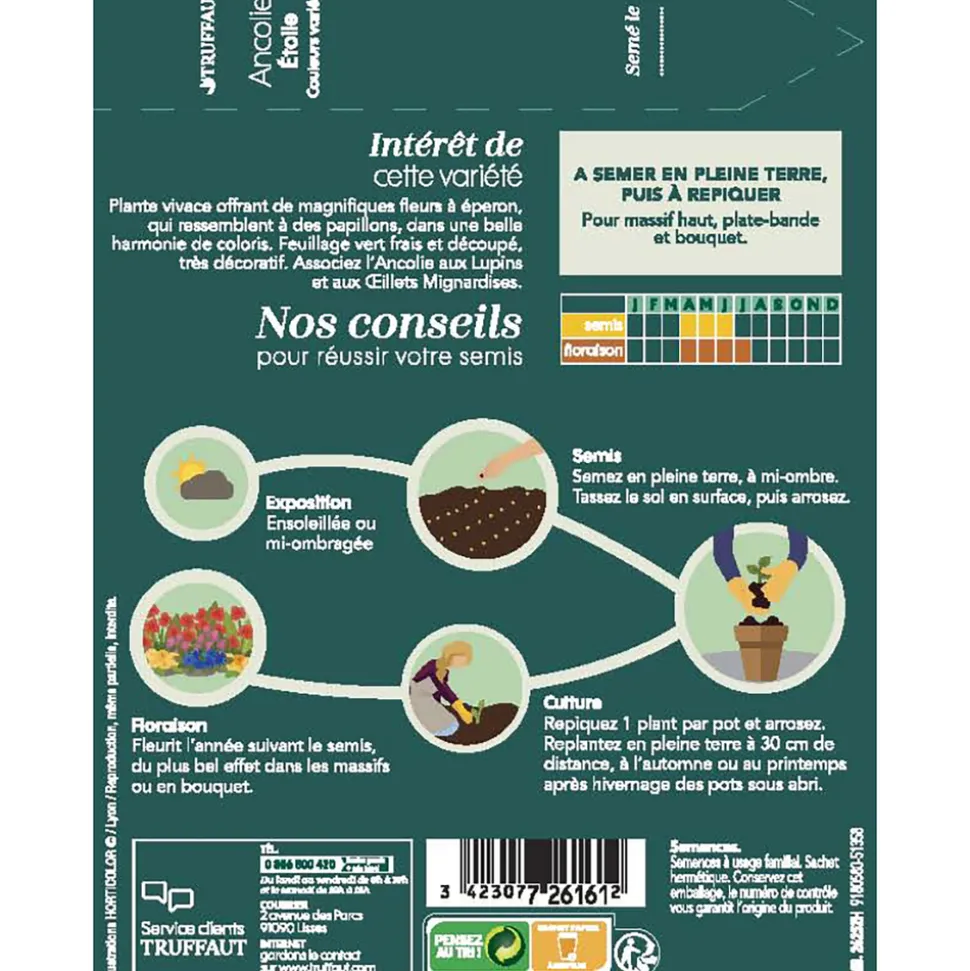 Semez d’Avril à Juin dans une terre fine à mi-ombre. Au stade 3-4 feuilles, replantez les plantes les plus vigoureuses à 10 cm de distance à mi-ombre., Juste avant l’hiver, placez vos ancolies en pots sous abri.