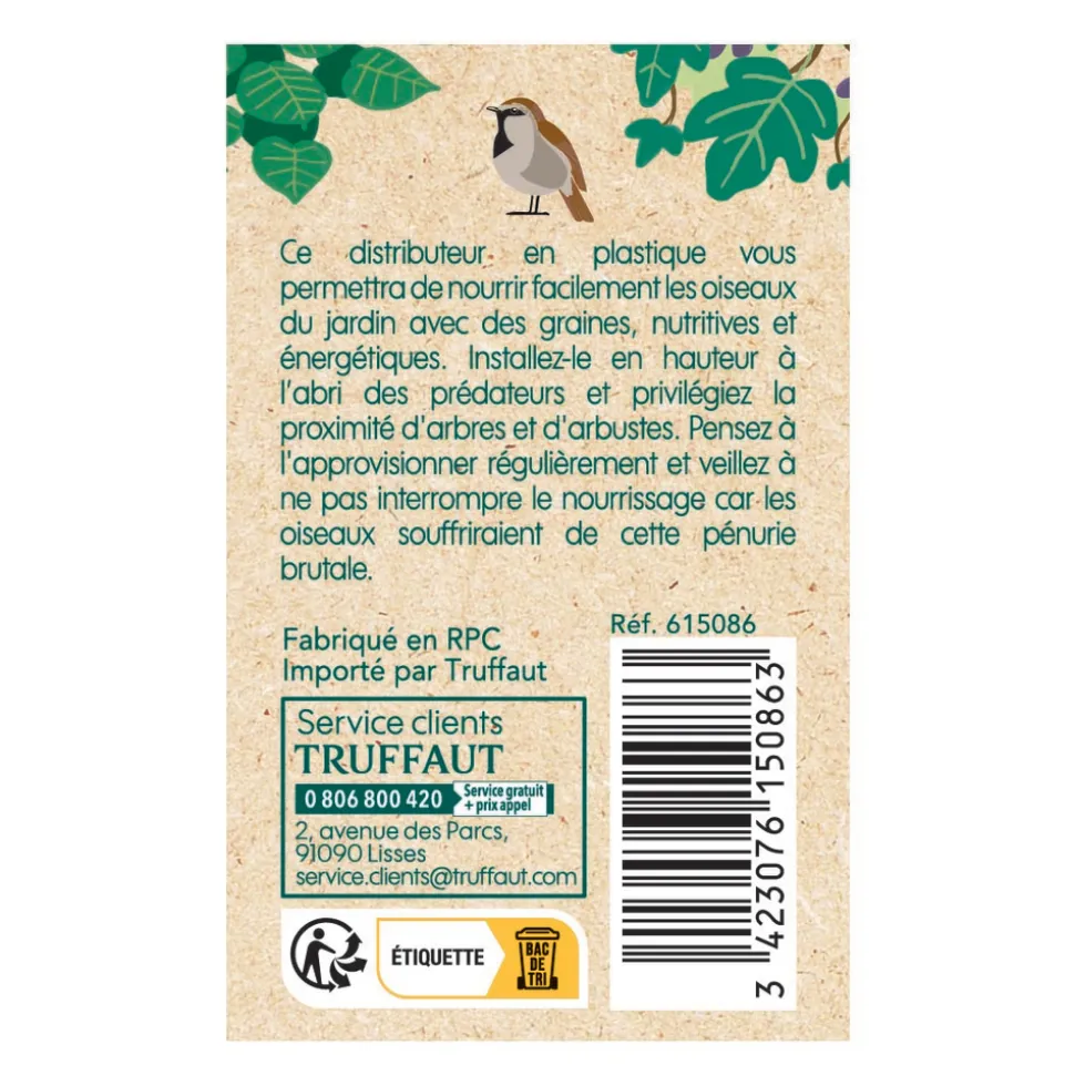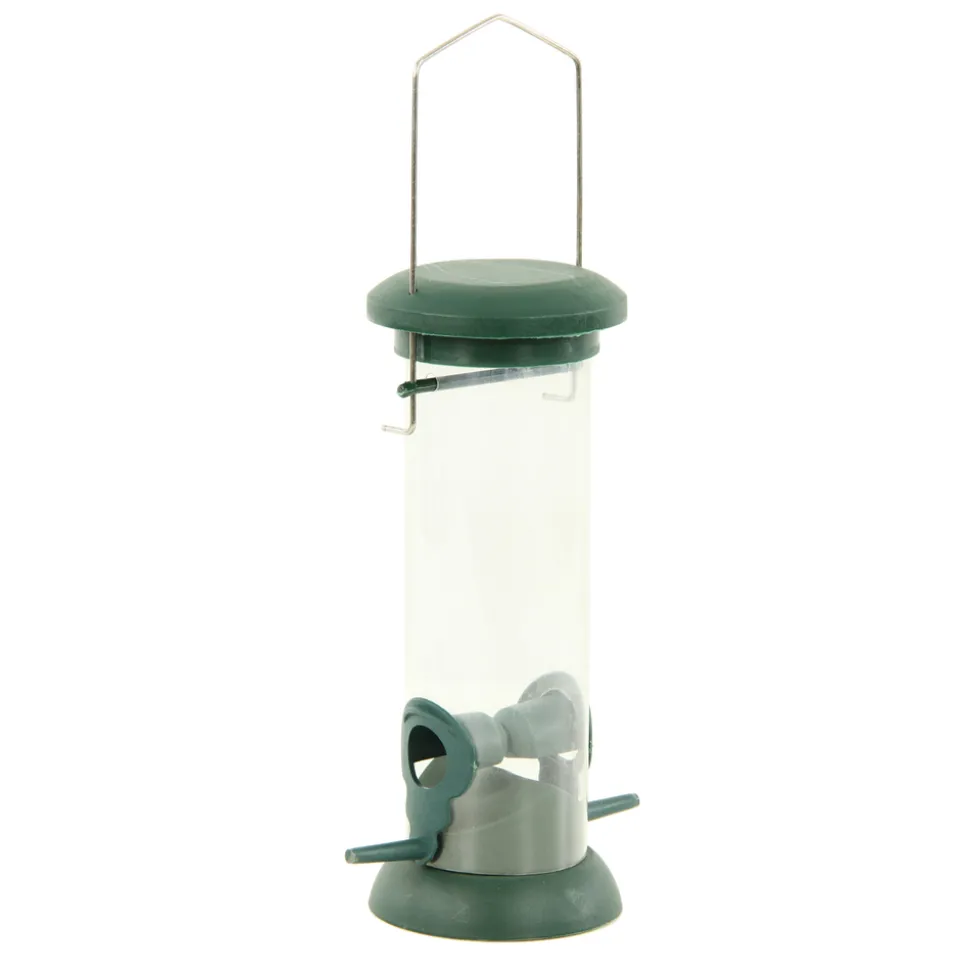 Si vous aimez observer els oiseaux, attirez-les avec de la nourriture. Grâce à ce distributeur à graines, fabriqué en plastique, non seulement vous aurez le plaisir de voir les oiseaux devant votre fenêtre, mais vous pourrez les aider à survivre en hiver, lorsque les sources d’aliments se font rares. Dimensions : L.13,5 x l.13,5 x H.24,5 cm