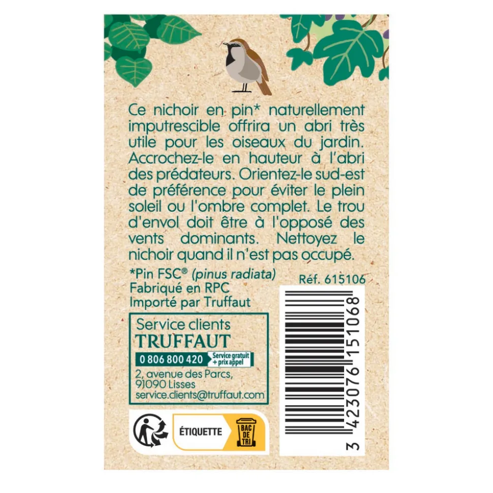 Si vous aimez observer les oiseaux, attirez-les avec ce beau nichoir Ecorce en bois ! Vous aurez le plaisir de les voir s’ébattre devant votre fenêtre. Optez pour ce beau nichoir en bois imitant l’écorce d’arbre, qui convient à toutes les tailles d’oiseaux et décorera votre jardin. Dimensions : L 17 x l 14 x H 17 cm. Trou d’envol : D.3,2 cm.