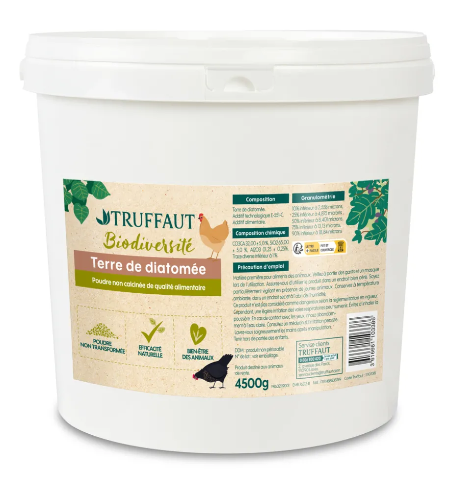 La terre de diatomée est une poudre fine composée des restes fossilisés de micro-organismes marins. Ces micros-algues ont une structure cellulaire riche en silice, ce qui confère à la terre de diatomée des propriétés multiples grâce à sa structure poreuse et abrasive. Utilisée comme produit alimentaire, elle constitue un excellent détoxifiant pour l’organisme, un vermifuge naturel et favorise une meilleure digestion chez vos animaux de la basse-cour. Terre de diatomée, en poudre non calcinée – 4500g.