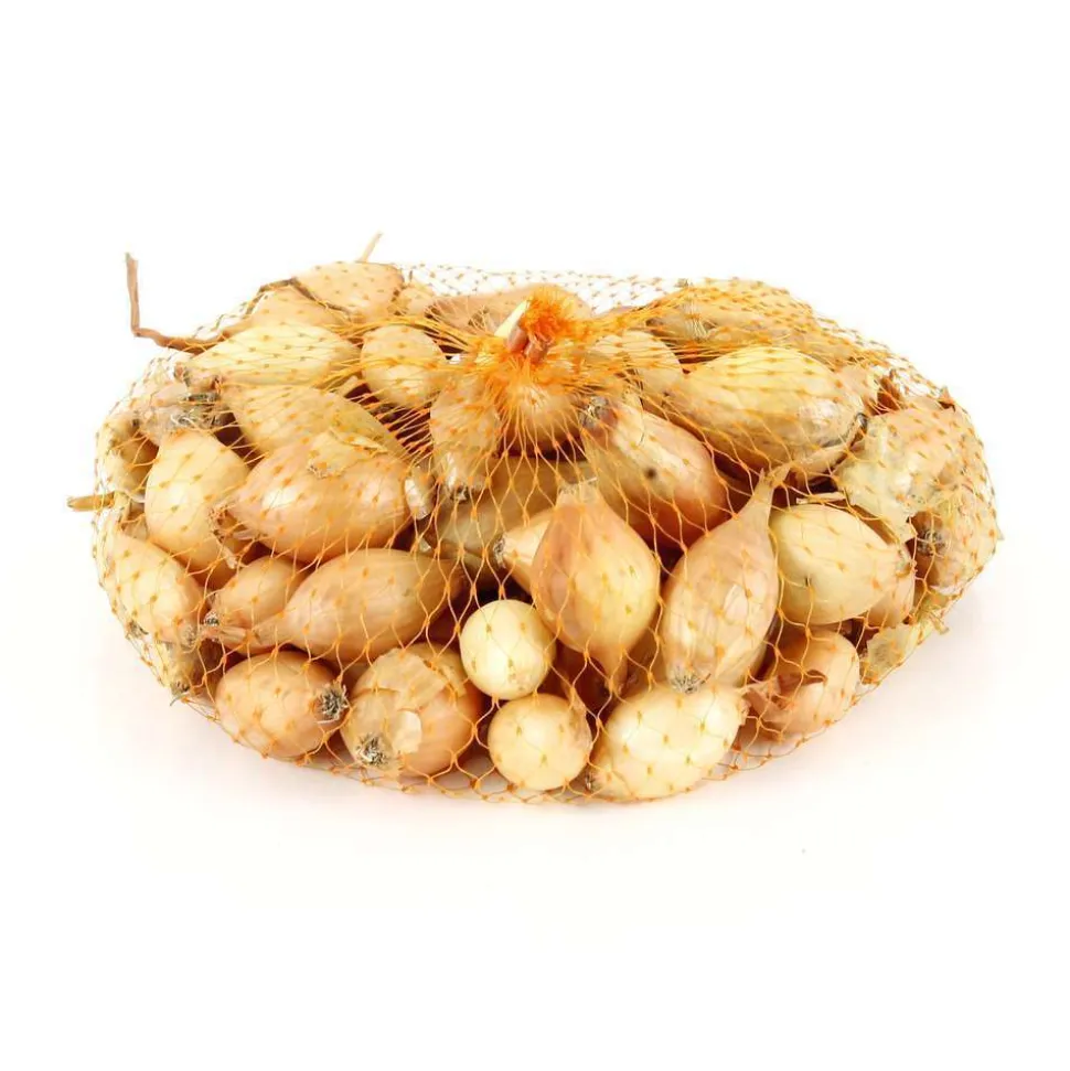 Ces bulbes d’oignon long Sturon de calibre moyen 14/21 offrent une tunique très épaisse de couleur jaune cuivrée à la chair blanche savoureuse. Leur teneur en matière sèche élevée offre une meilleure conservation que celle des oignons jaunes espagnols classiques. Cette variété est utilisée pour une consommation en oignon frais, ou en oignon de garde.