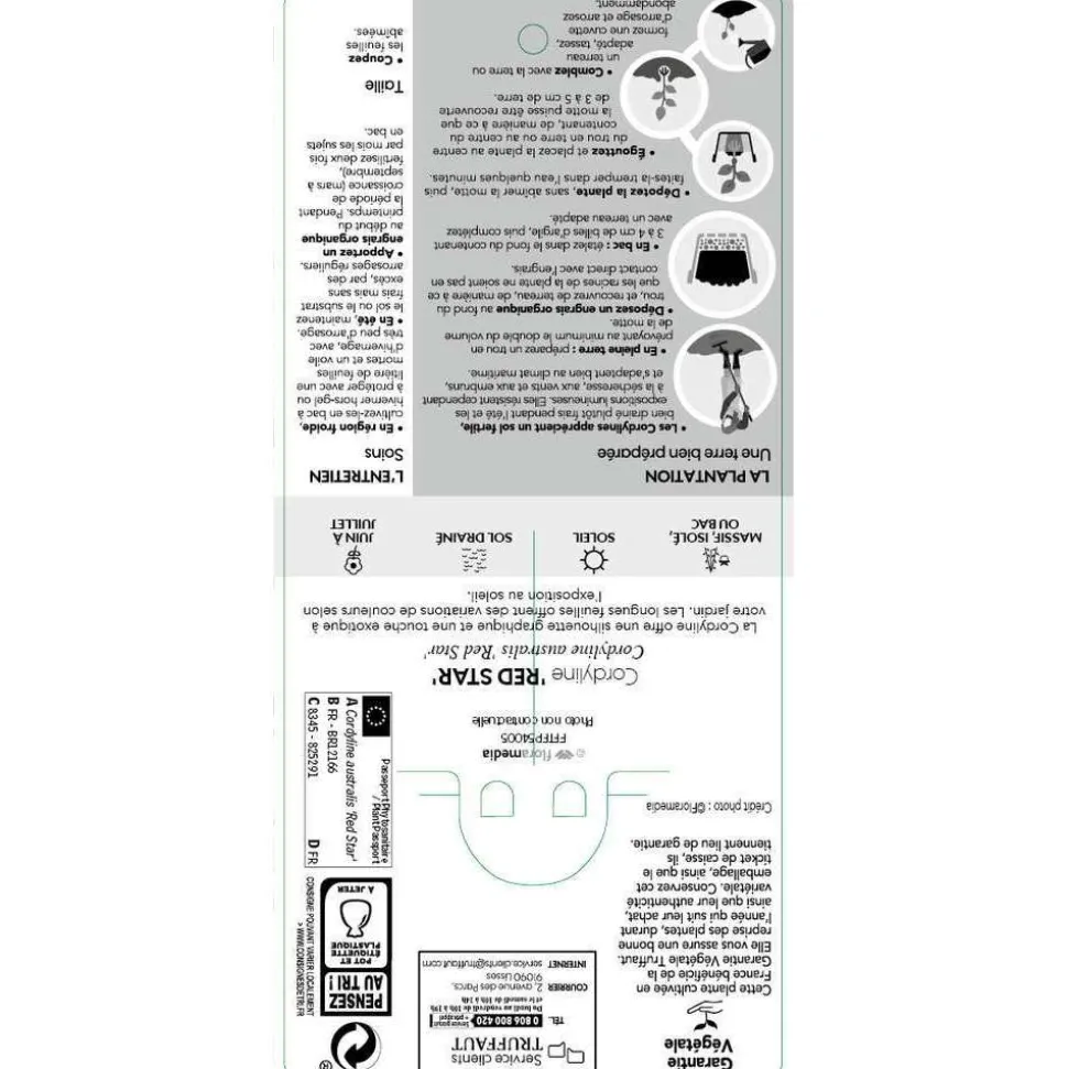 Cet arbuste, au port érigé, semblable à un palmier, originaire de Nouvelle-Zélande pour l’espèce, atteint une hauteur de 2 m, pour une largeur de 1 m. Feuillage persistant. Feuilles étroites, rouge bronze, disposées en rosette. Floraison estivale, en panicules de petites fleurs blanc crème. Rustique jusqu’à -7°C. En région froide, à hiverner dans une serre froide entre 5 et 7°C. A planter dans un sol normal, pultôt frais, bien drainé. Exposition au soleil. Culture en pot: bien arroser pendant l’été, pour maintenir le sol frais. De mai à septembre apport d’engrais liquide tous les 15 jours.