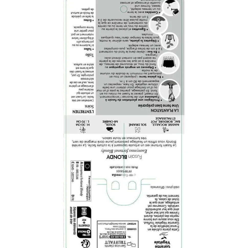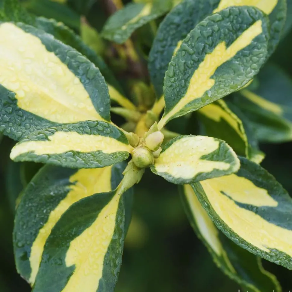 Un arbuste au feuillage persistant vert foncé brillant avec un panachage jaune très présent. Ses feuilles sont ovales de 3 centimètres de diamètre, et ses rameaux sont jaune clair. Sa végétation est étalée, tapissante, et présente de longs rameaux horizontaux. Vous le planterez dans un sol normal, voire sec, qui peut même être un peu calcaire. Il supporte aussi bien l’exposition ensoleillée qu’à mi-ombre. Il présente une très bonne résistance aux maladies, et son besoin en arrosage est modéré.