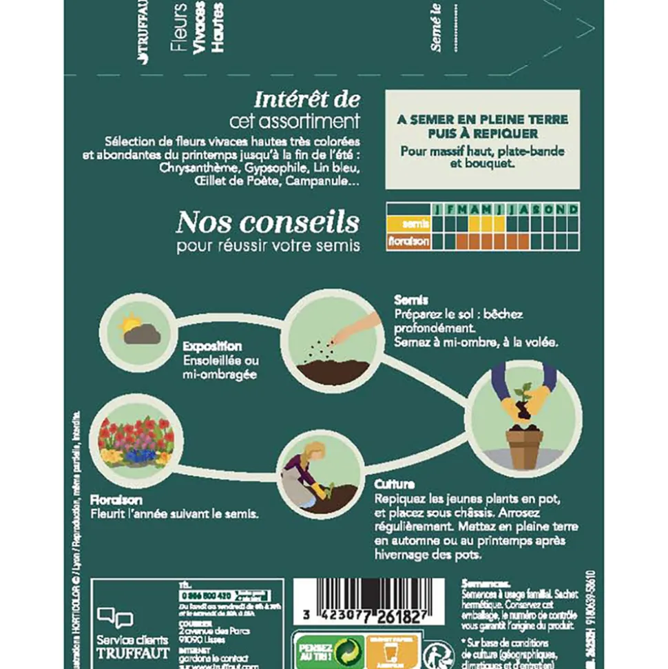 Avant de semer vos graines, il est important de prévoir un emplacement bien approprié: espacement des plants d’environ 30cm et bonne exposition, pour ces vivaces qui refleuriront chaque année.