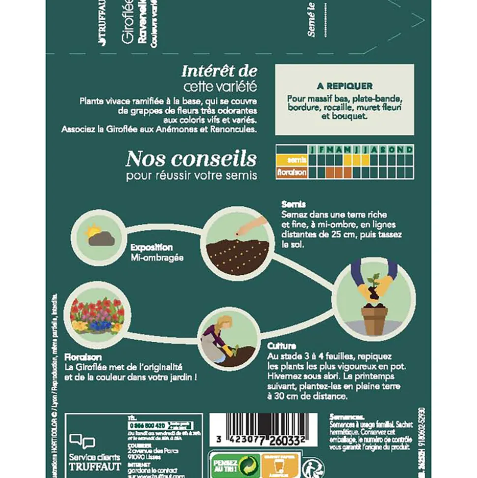 La griroflée Ravenelle est une plante vivace ramifiée à la base, qui se couvre de grappes de fleurs très odorantes aux coloris vifs et variés.