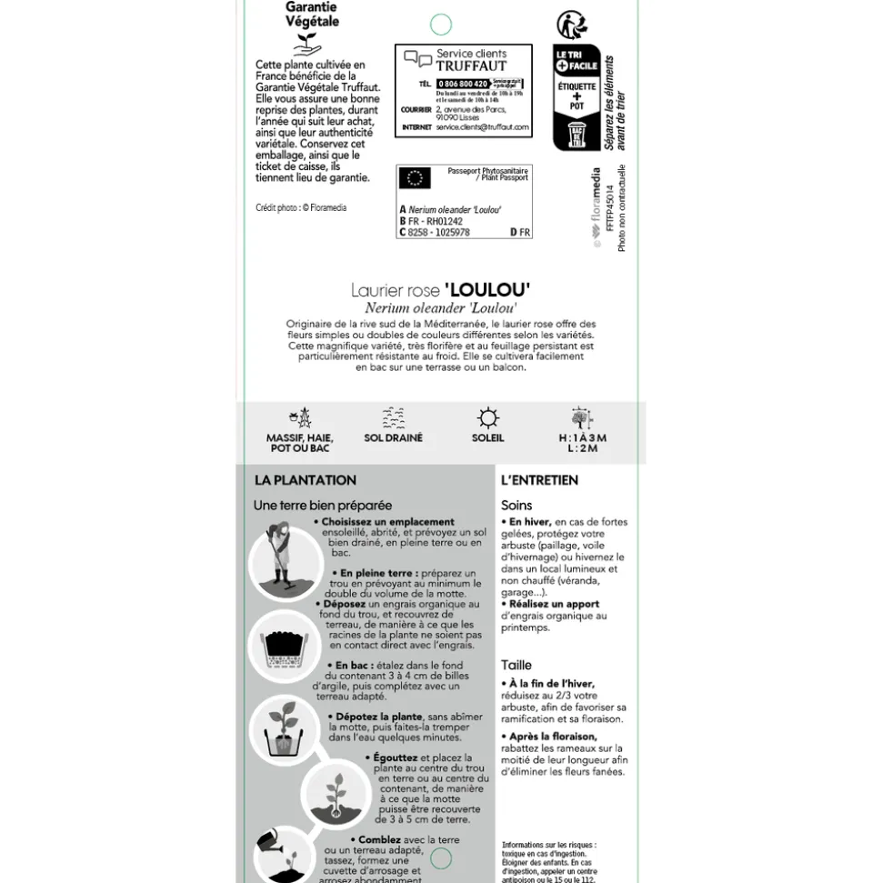 Toxicité par ingestion : Toxique en cas d’ingestion. Eloigner des enfants. En cas d’ingestion, appeler un centre antipoison ou le 15 ou le 112. Conserver l’étiquette ou une photographie du végétal pour faciliter son identification.
